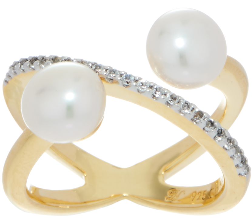 Honora Sterling Silver X-Design Double Cultured Pearl Ring, Size 6
