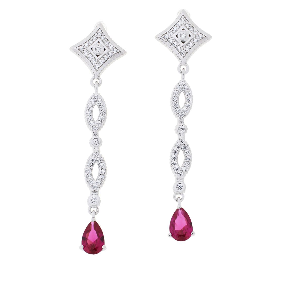 Add timeless elegance and a pop of rich color to your jewelry collection with these stunning HSN Sterling Silver Pear-Shape Ruby Dangle Earrings. Featuring vibrant, pear-cut rubies in a graceful drop design, these earrings are the perfect blend of classic glamour and modern sophistication.