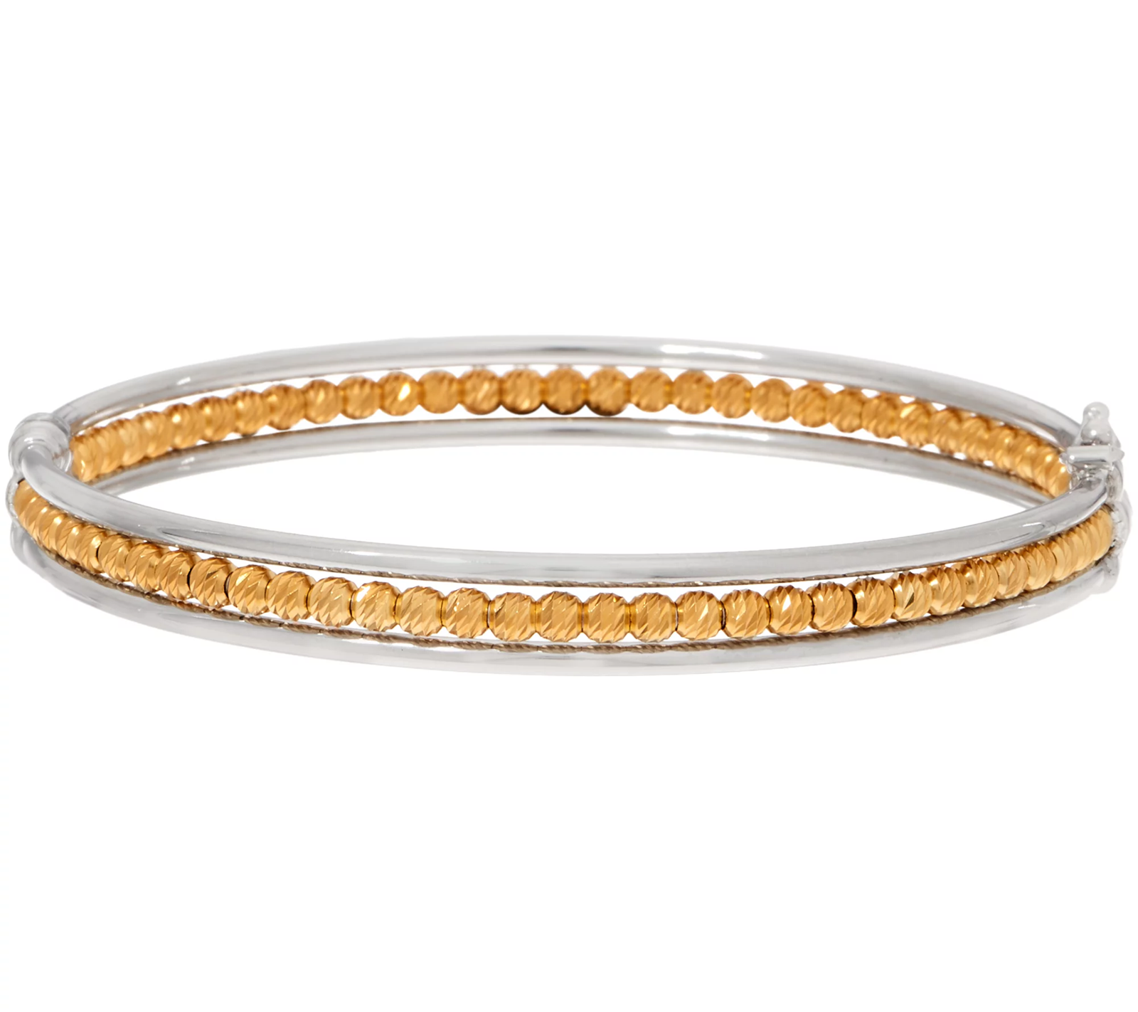 A simple, staple style at first glance, this bangle brings the detail and diamond-cut drama with a center row of intricate beads. From the Italian Jewelry Collection.