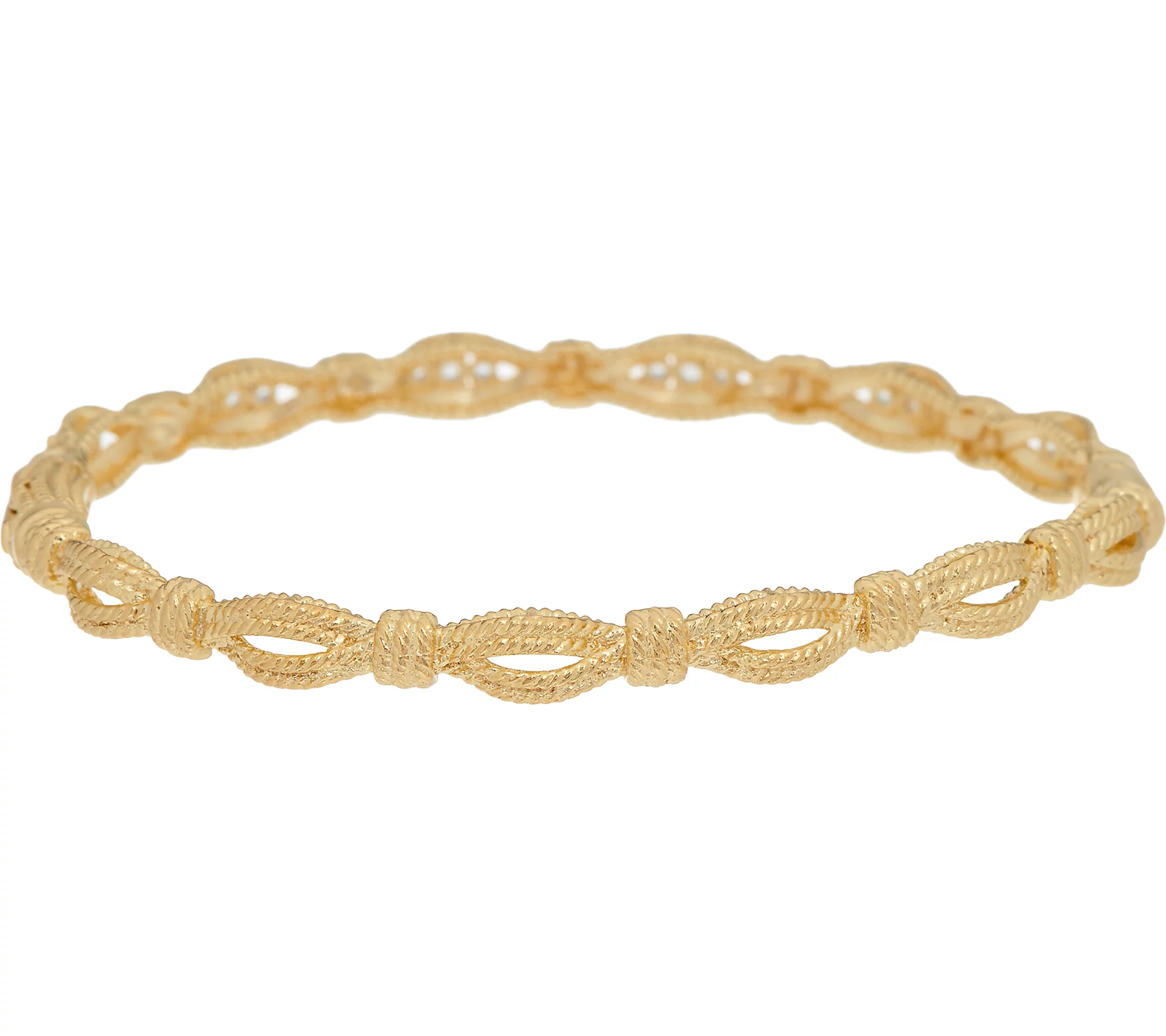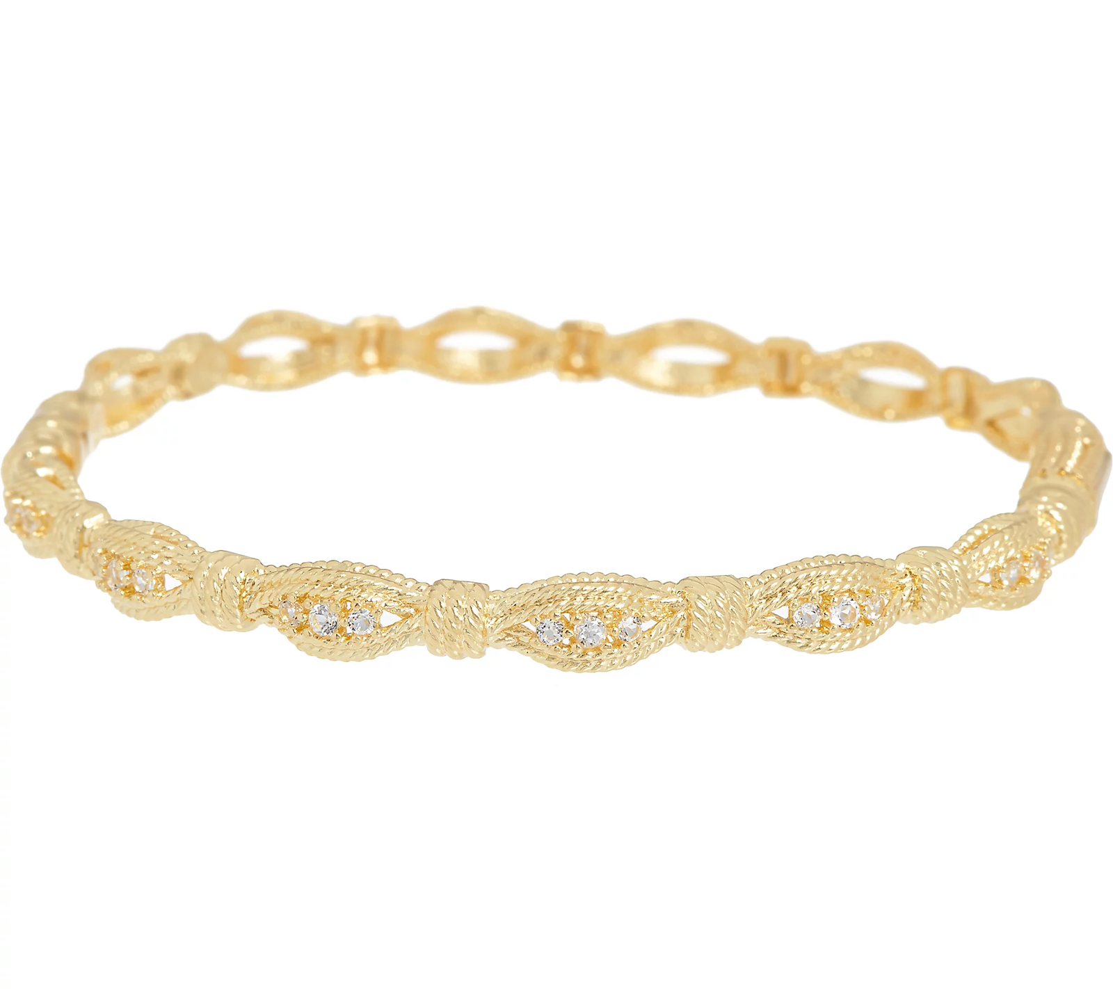 Some bangles are meant to shine solo. This Vicenza Silver sterling silver style features stations of white topaz along the textured design. Although it's a pretty piece all on its own, it will certainly stand out along side other bangles in a layered look. From Vicenza Silver(R).