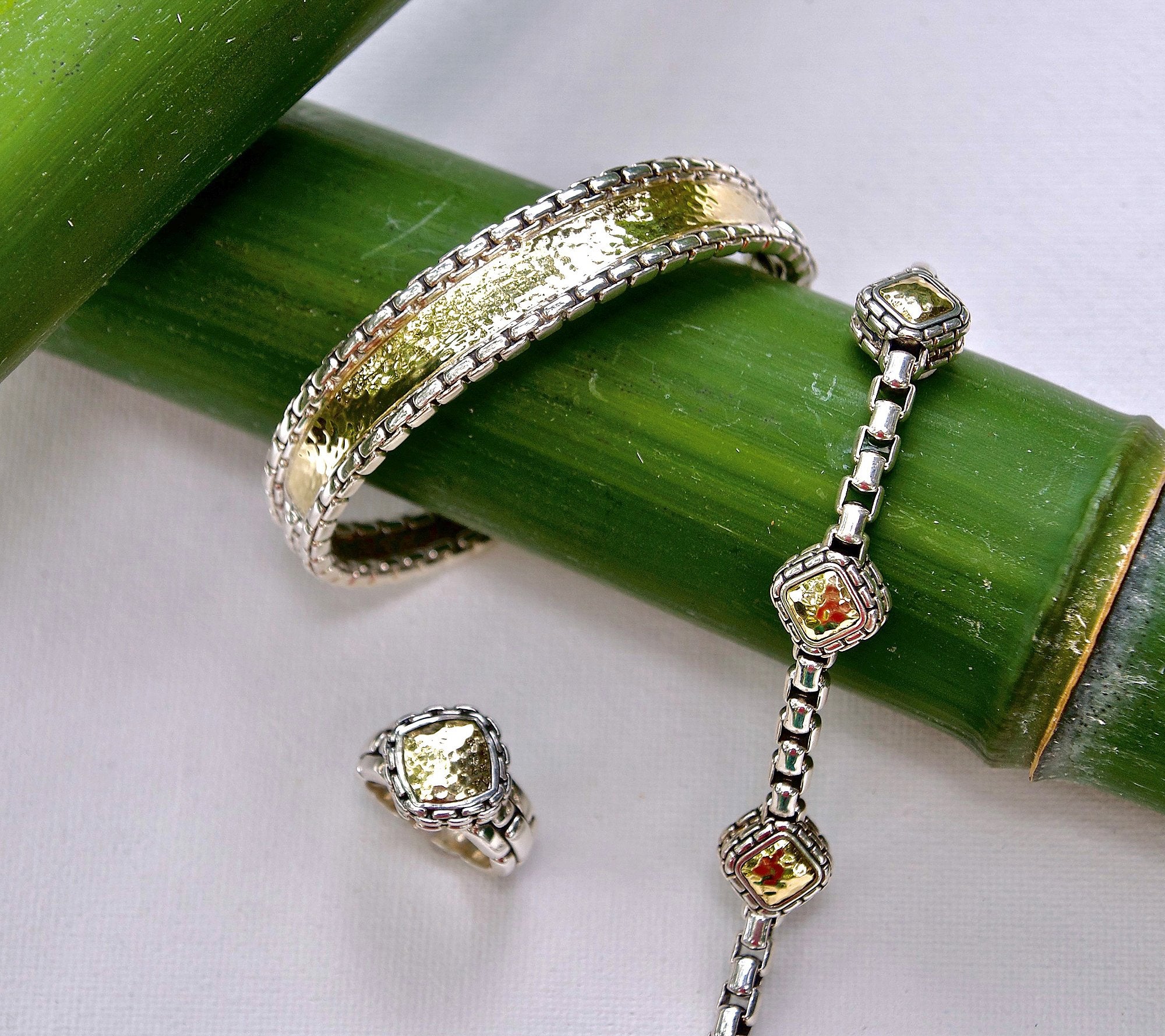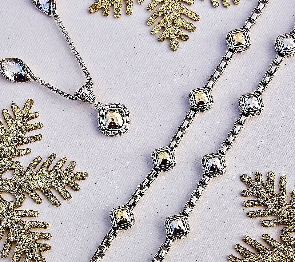 Offering you the best of both worlds (sterling silver AND 14K gold), this box chain beauty has an ambience of elegance for every look. From JAI.