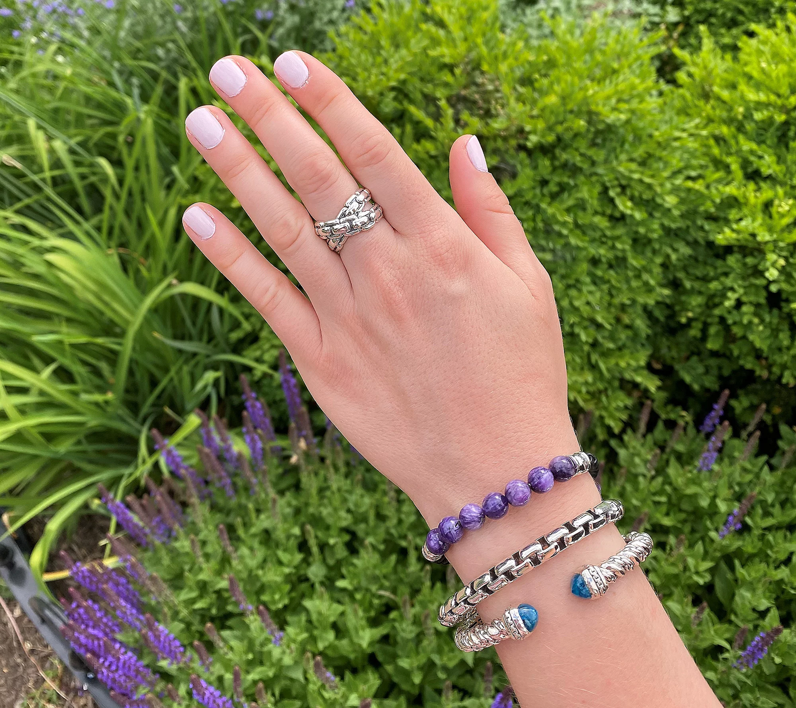 Your fashion sense isn't just one thing. Neither is this shiny JAI cuff of carved box chain. It's the kind of accessory that meshes with all the trends you've tried and those you've yet to embrace. (Translation: you'll be wearing it with everything.) From JAI.