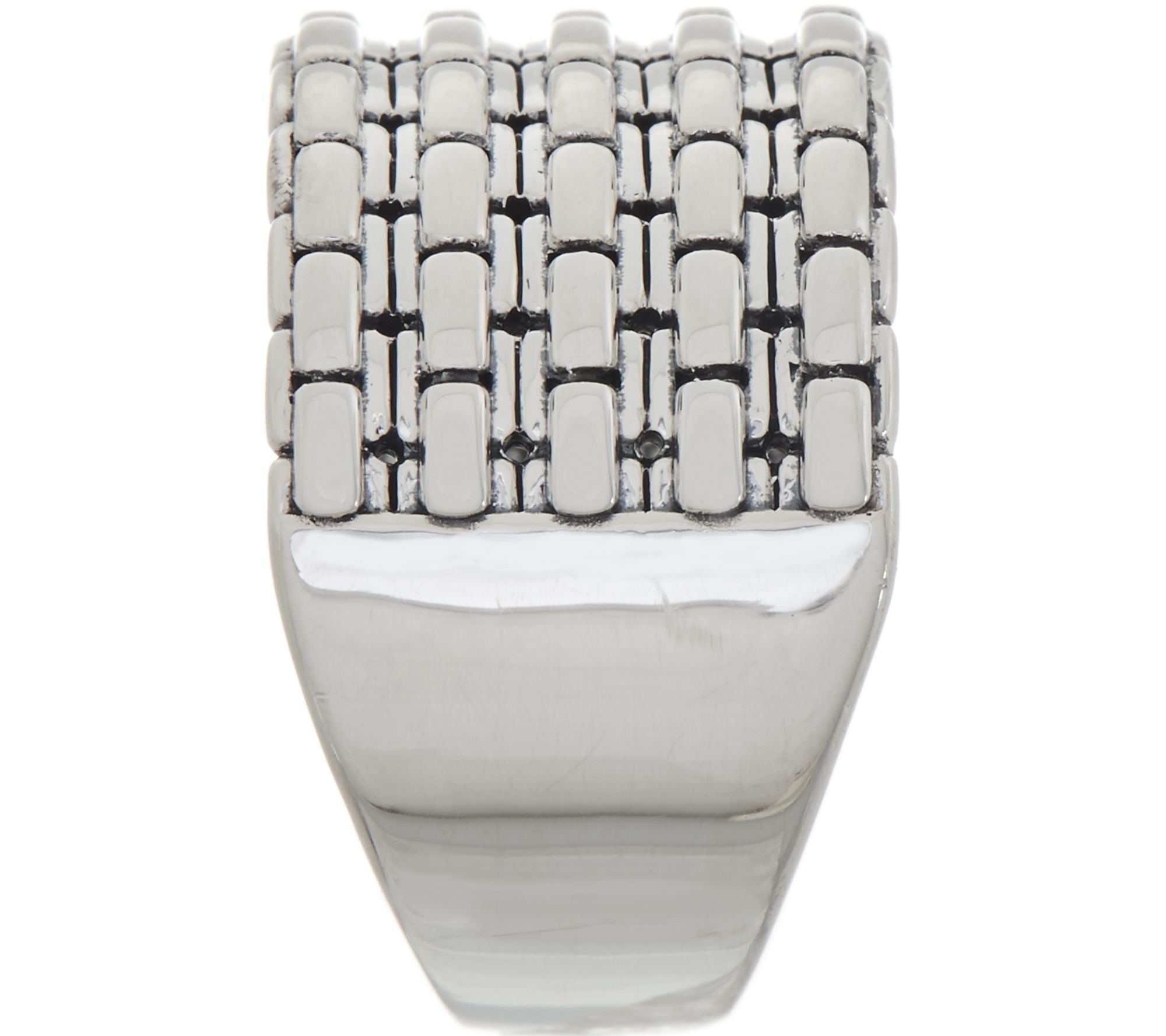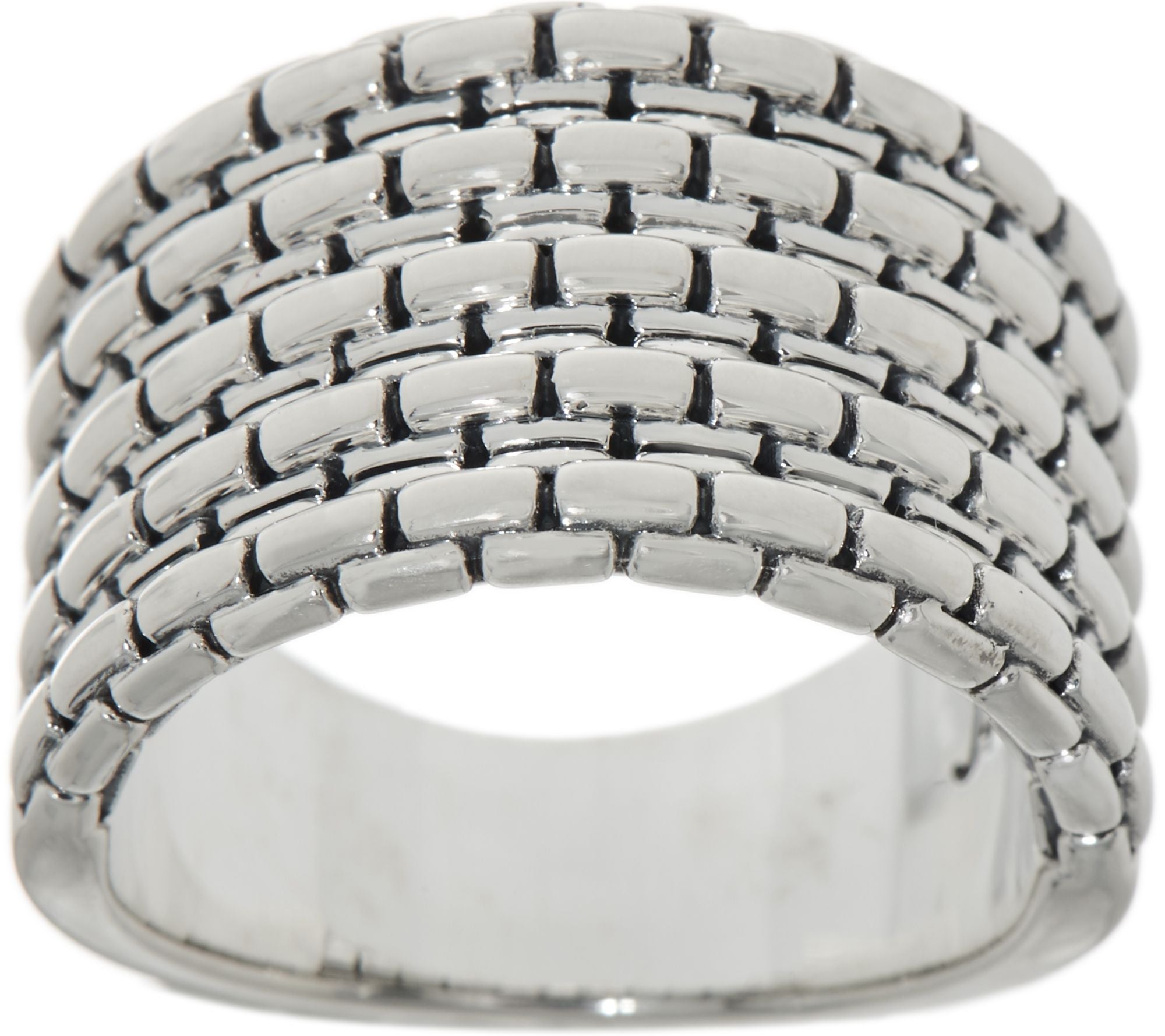 With its wide box chain design, this sterling silver ring takes accessorizing with texture to a new dimension. From JAI.