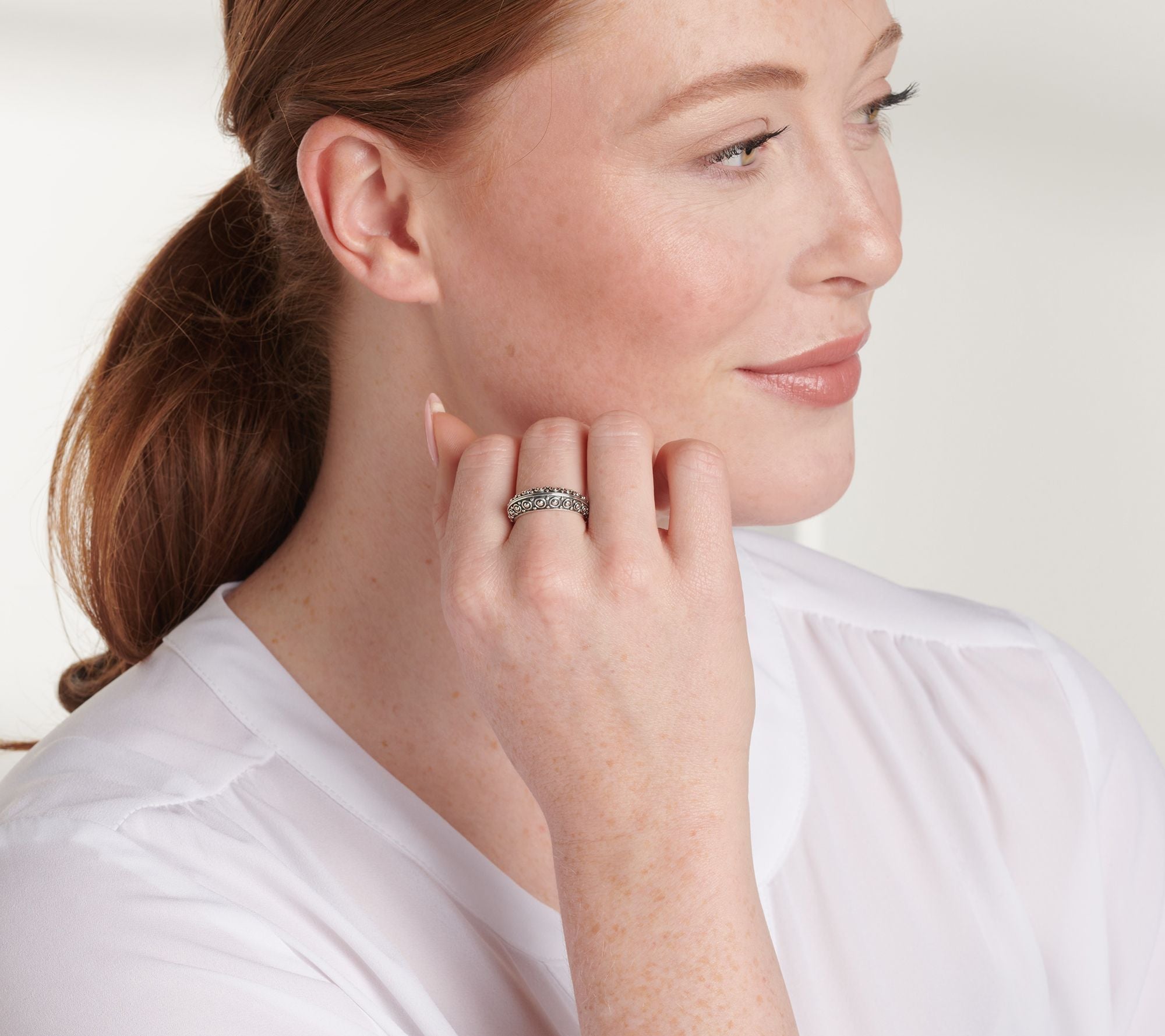 Slightly oxidized and perfectly polished sterling silver makes this signature band ring a must-have for your everyday attire. From JAI.