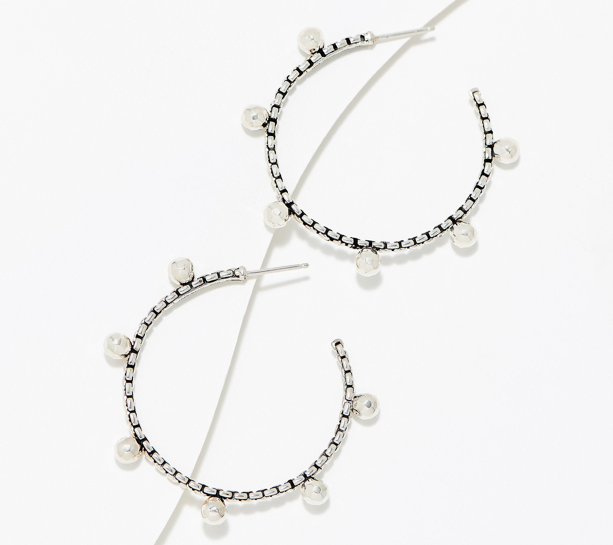 You left ordinary behind years ago. So when it comes to everyday accessorizing, adding a hoop to your look looks something like this: rich and substantial JAI box chain loaded with shiny hammered beads. From JAI.