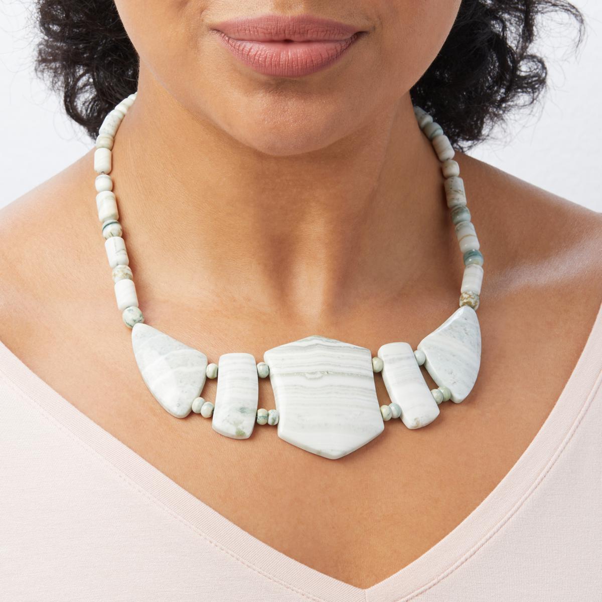 Subtle elegance meets natural artistry in this Mine Finds by Jay King Banded White Quartzite Necklace, a wearable work of art showcasing nature’s unique patterns and textures.