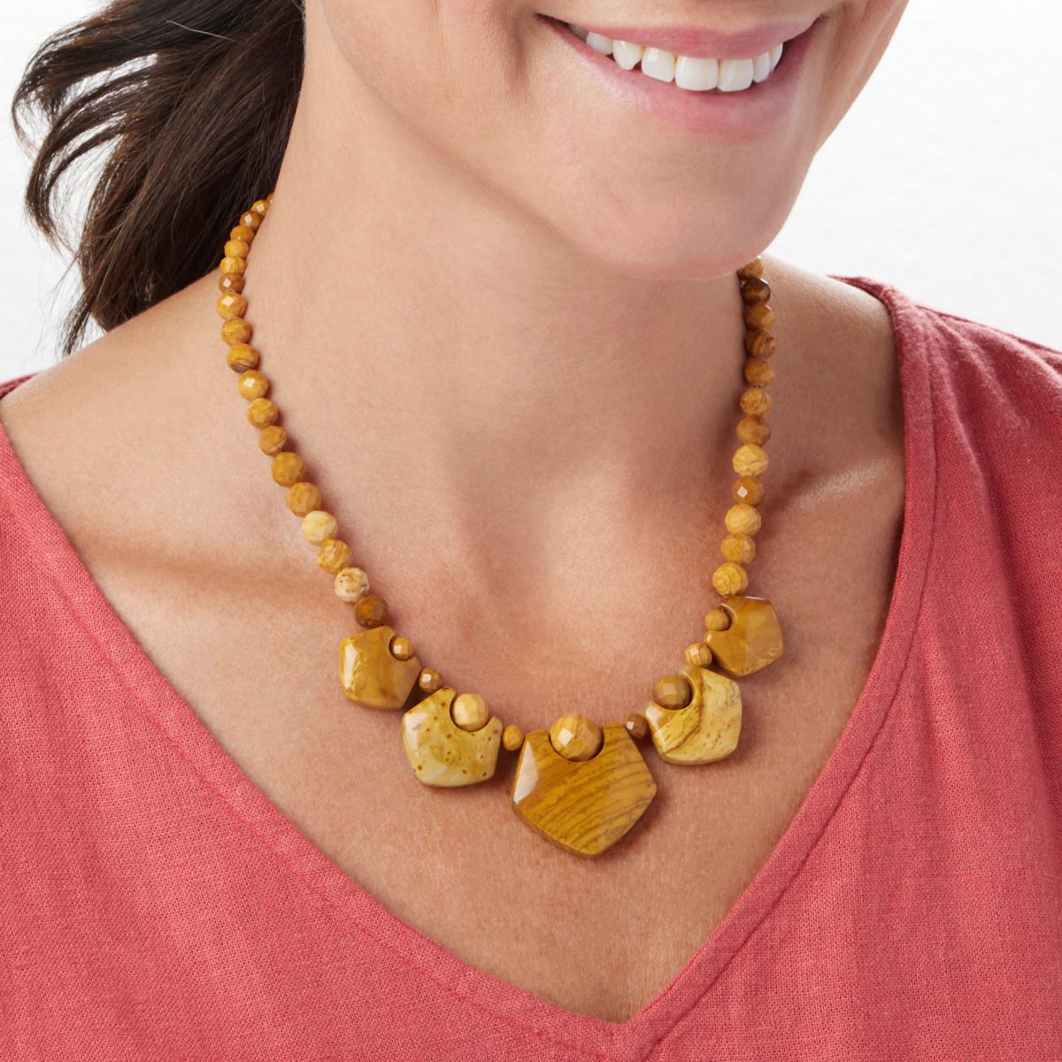 Bring the natural warmth of the Australian Outback to your look with this stunning Jay King Sterling Silver Desert Sunset Stone Necklace. Featuring unique Desert Sunset Stones, each blending tones of golden yellow, earthy brown, and soft amber, this necklace captures the tranquil beauty of a desert horizon.