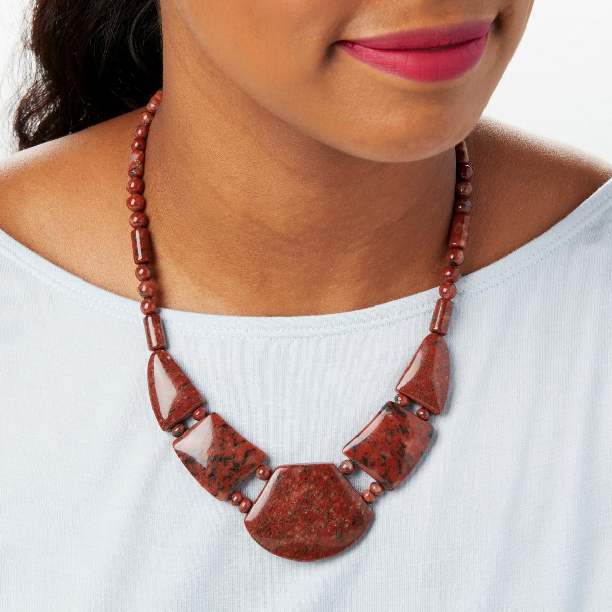 Add rich, natural color to your jewelry collection with this Jay King Sterling Silver Indonesian Red Quartzite Necklace — a striking piece that blends organic form with modern design.