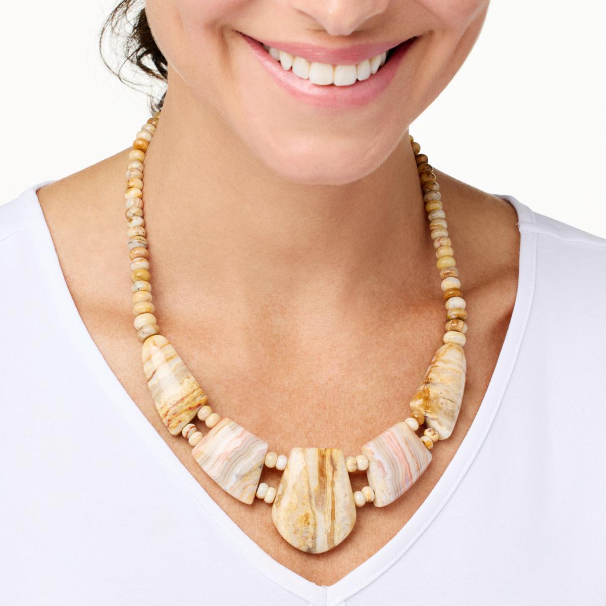 Discover the beauty of nature’s artistry in this Jay King Sterling Silver Multicolor Banded Agate Necklace, handcrafted with stunning stones sourced from Indonesia.