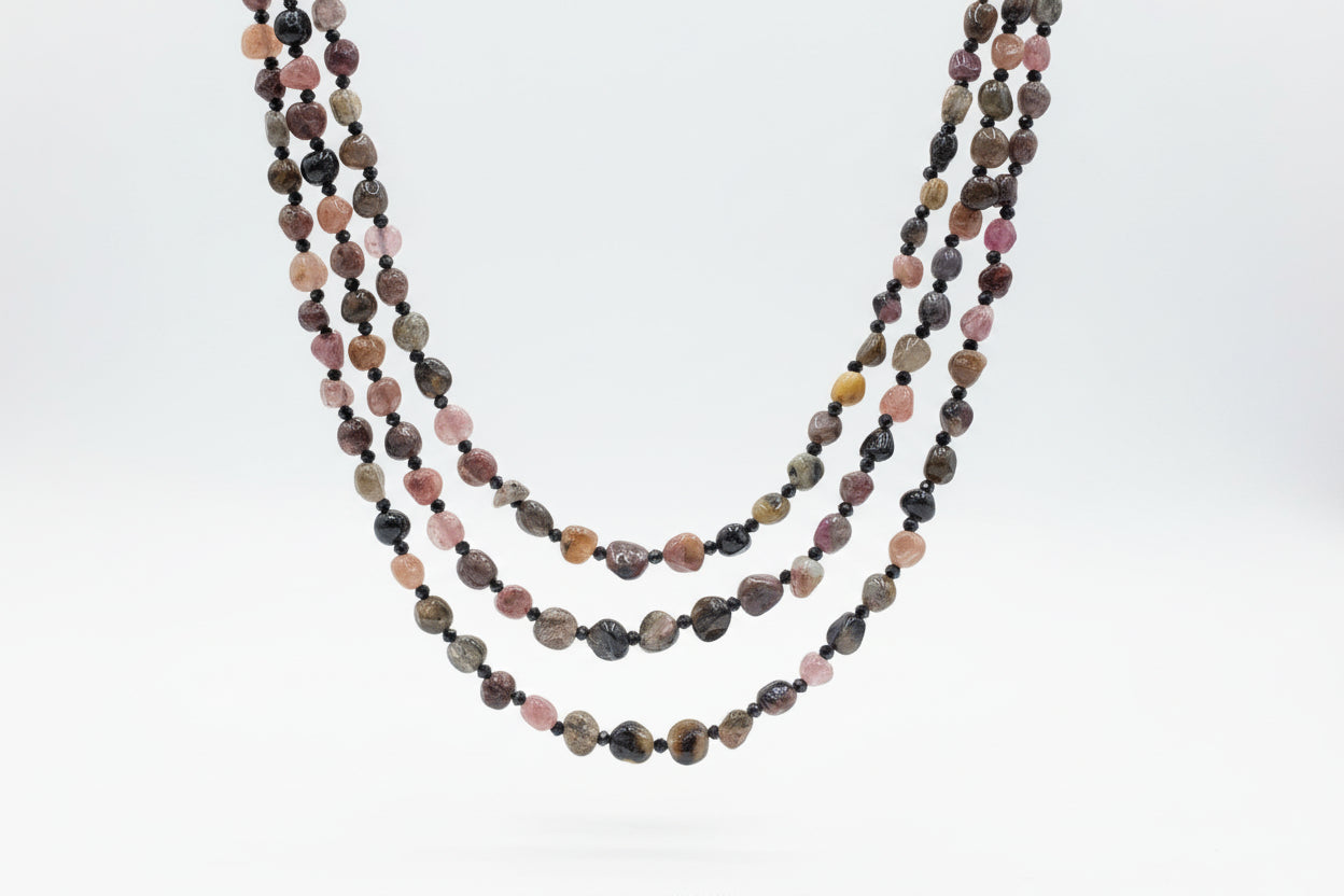 Beading Pattern: Alternating tourmaline nuggets and black spinel rounds