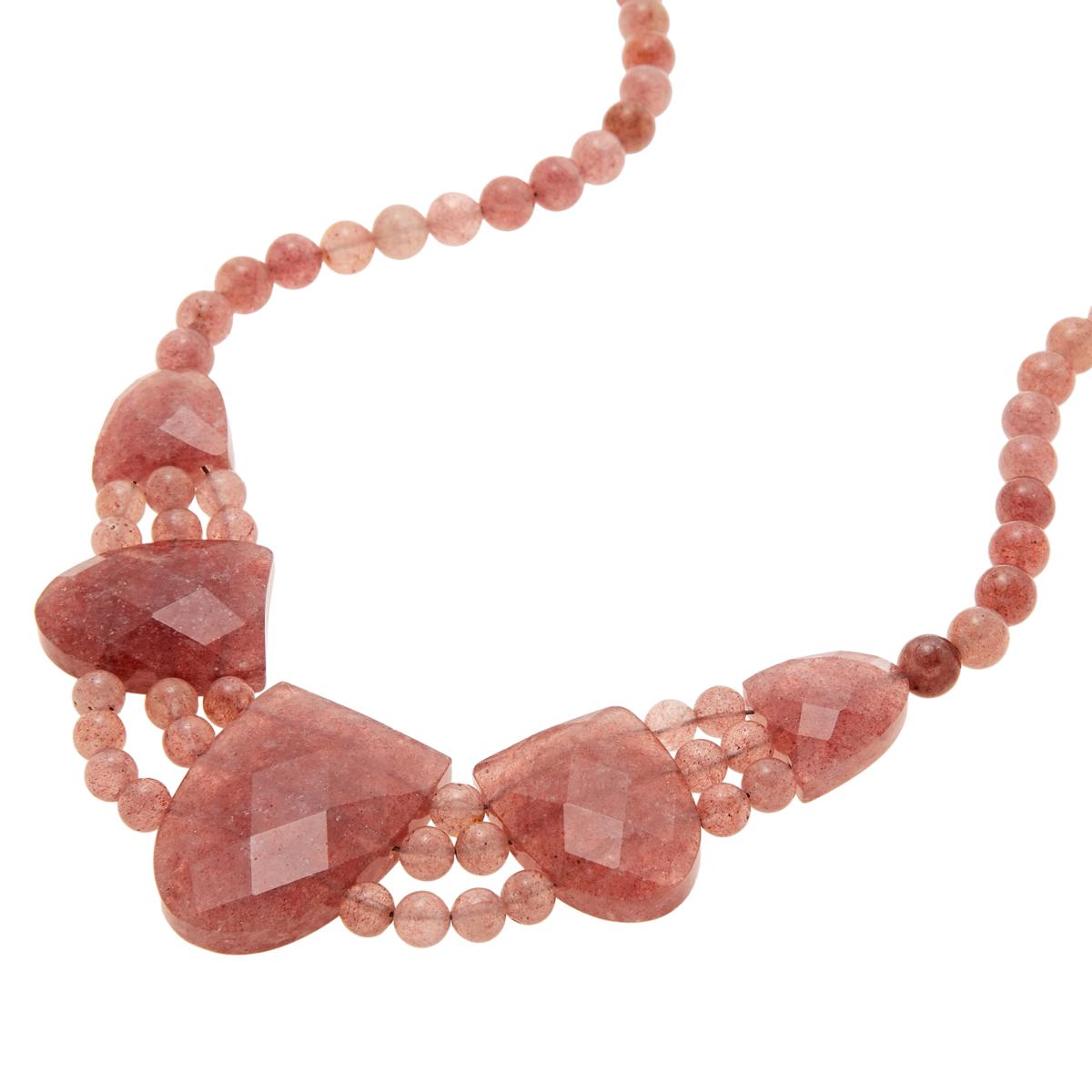 The natural, translucent quality of the rare Brazilian pink quartz used in this bold, necklace design, makes this handcrafted gemstone piece a beautiful addition to any jewelry collection. From Jay King.
