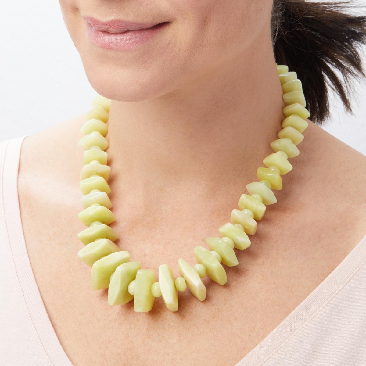 Featuring alternating disc- and rondelle-shaped Bauhinia stones, each polished to a soft glow, this necklace blends a subtle pastel yellow palette with Jay King’s signature sterling silver craftsmanship. The smooth, layered profile offers a versatile look that pairs beautifully with casual and dressy attire alike.
