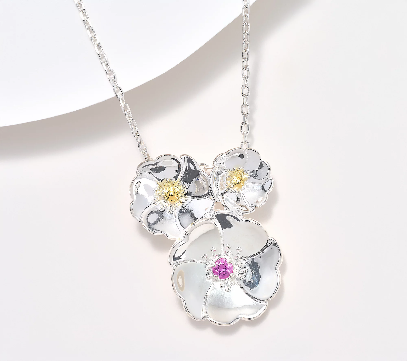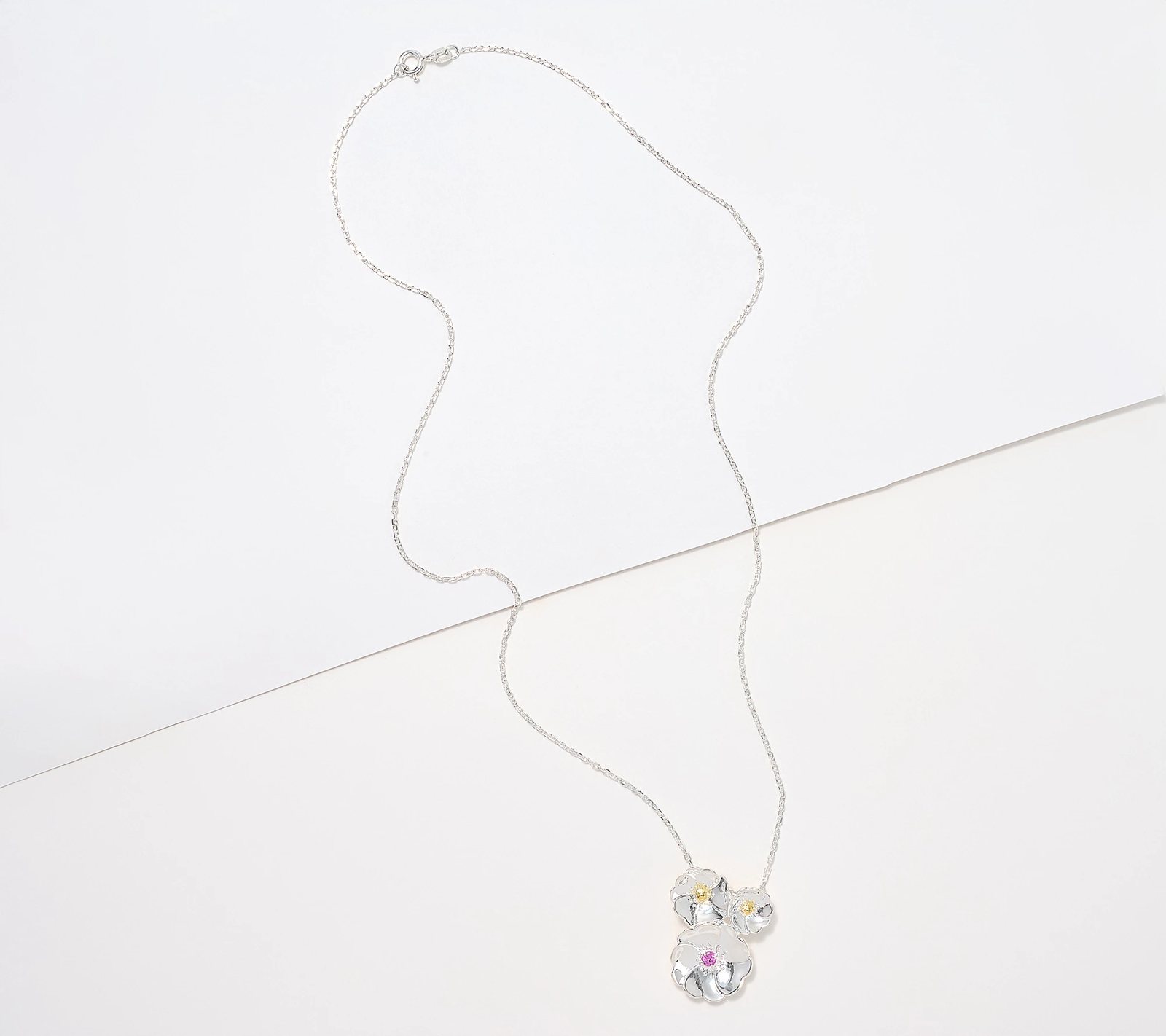 Add a touch of Ireland's natural beauty to your collection with this sterling silver Wild Irish Rose pendant. Adorned with pink simulated sapphire and gold accents, it brings a subtle yet striking elegance to any ensemble. From JMH Jewellery.