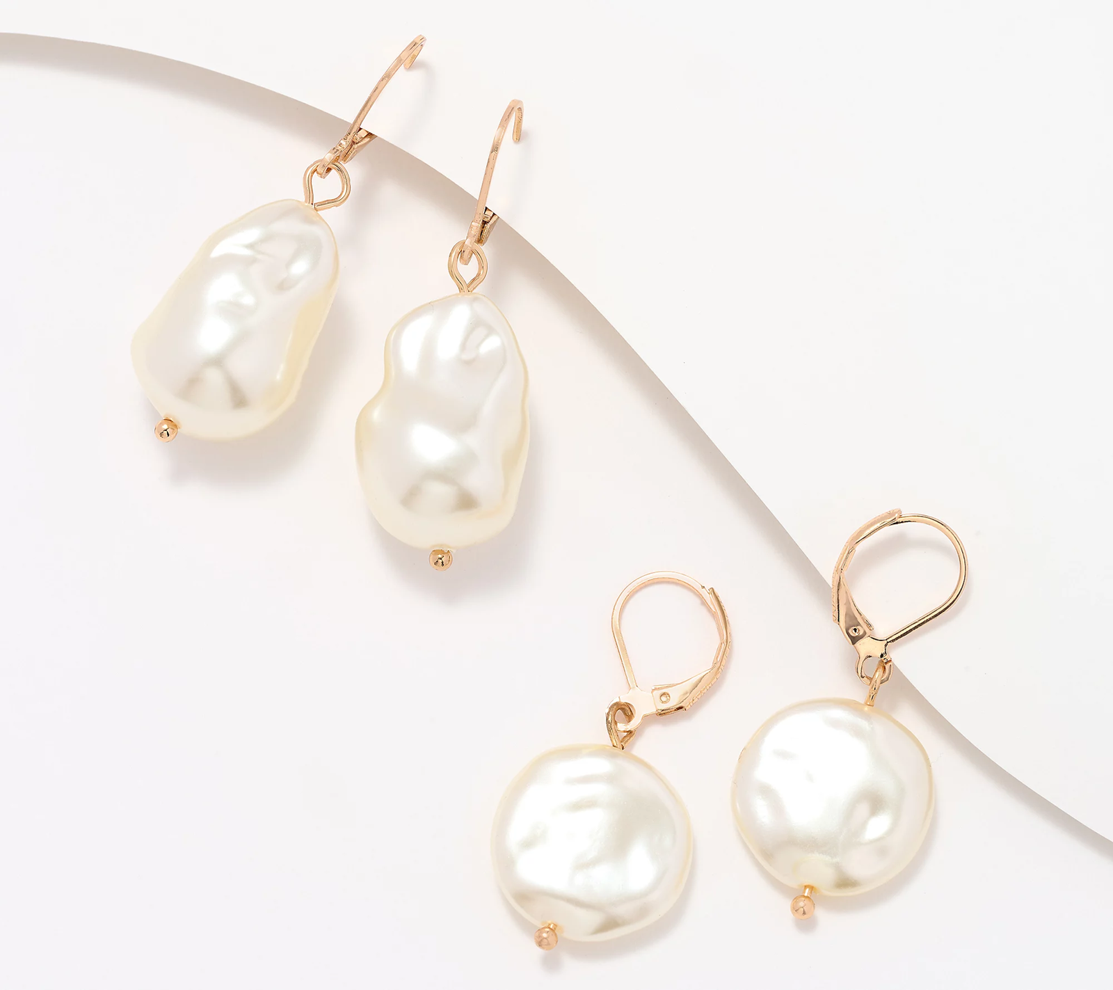 Classics you can always count on, this set of simulated pearl drop earrings features two pairs -- one teardrop-shape and the other round. The creamy pearls are the perfect pop of elegance to dress up any ensemble. From the Joan Rivers Classics Collection®