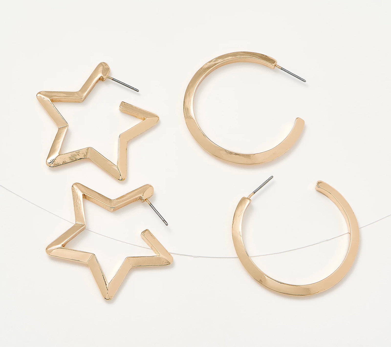 Sometimes you want a classic look, other times you want to shine. With this set of round and star-shaped hoops, you'll have earrings on hand for both style situations. From the Joan Rivers Classics Collection®.