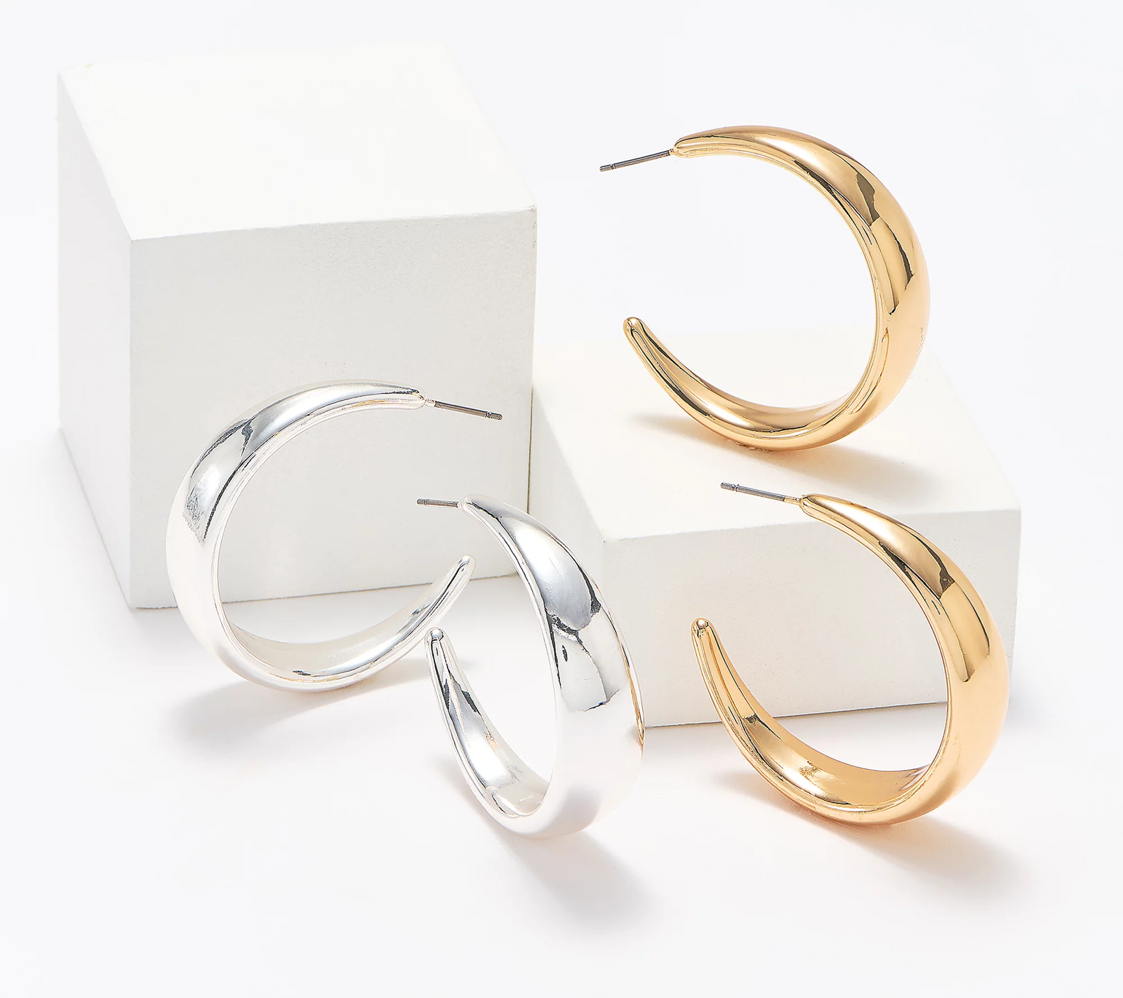 Can't decide if you're a cool tone or a warm tone? You don't have to with this set of hoop earrings. When they both flatteringly frame your face with their graceful tapered design, you may find you're a two-tone! From the Joan Rivers Classics Collection®.