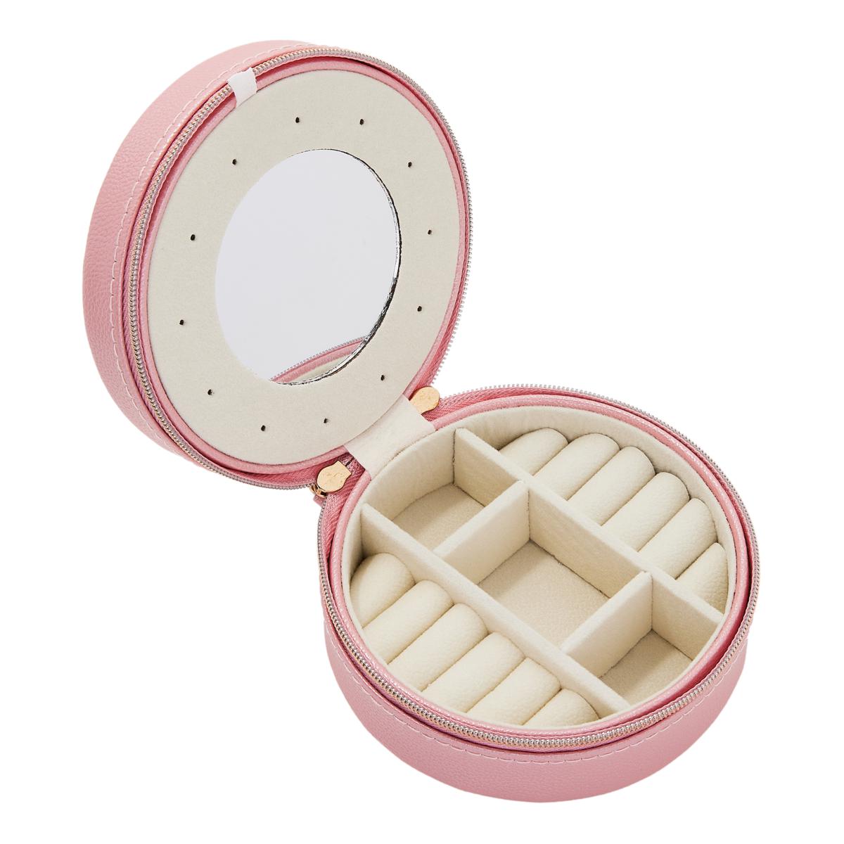 1 x Round Travel Jewelry Case with mirror, hooks, ring slots & dividers