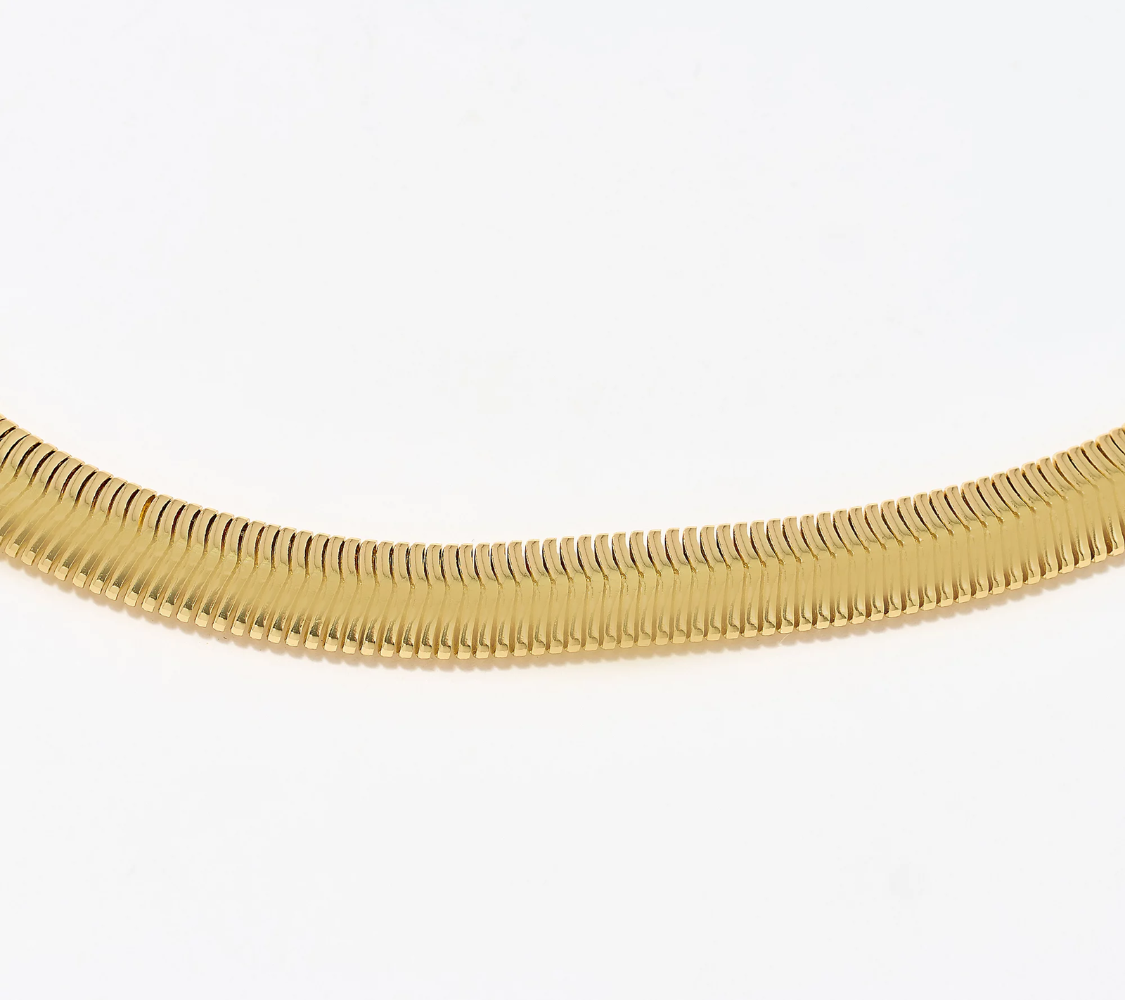 A celebration of simplicity and sophistication, this flat herringbone chain adds a touch of shimmer to each and every ensemble. From Kirks Folly.