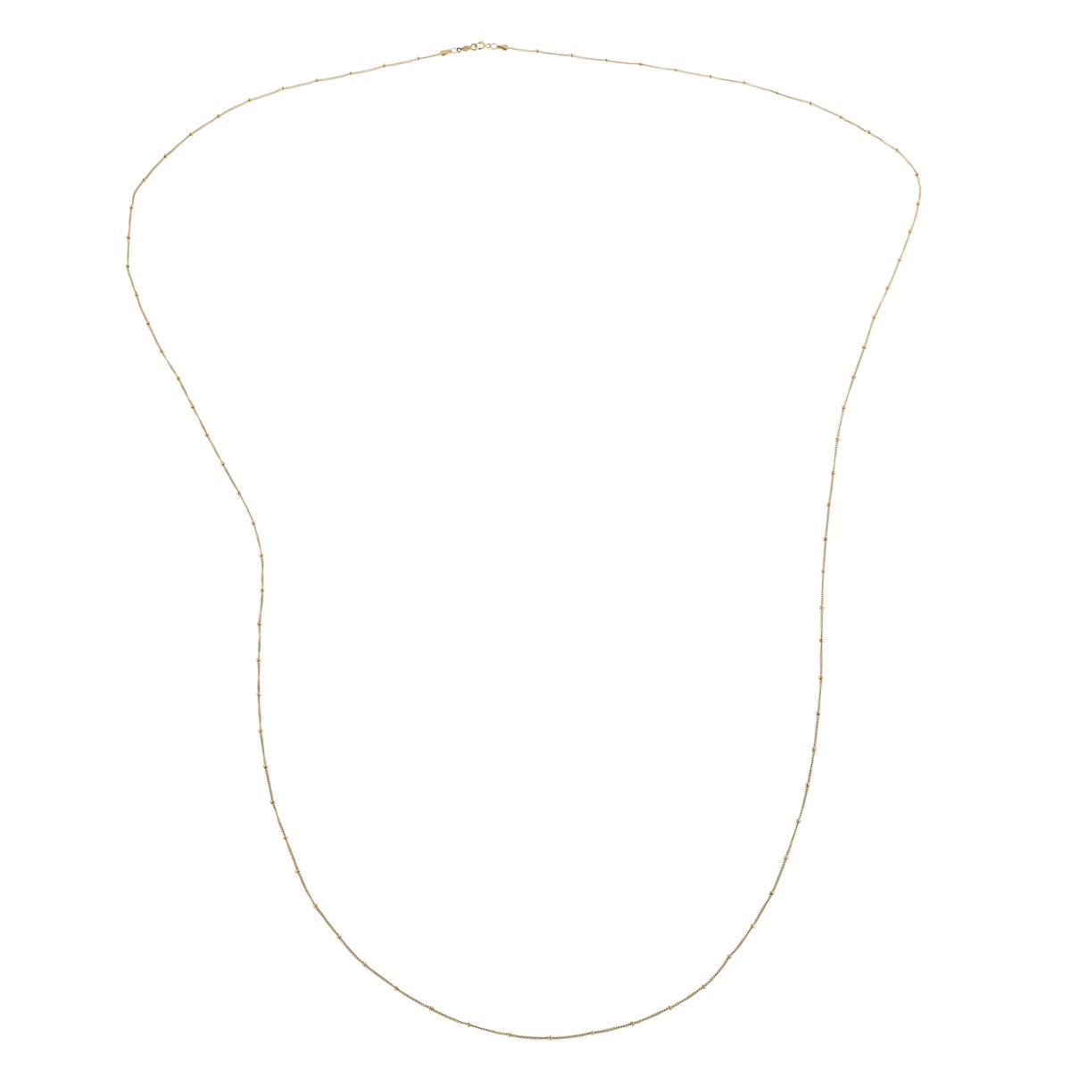 The Made by Malyia Perpetual 50" 14K Gold-Filled Chain Wrap Necklace is designed to elevate any outfit — from casual chic to evening sophistication. Crafted in rich, yellow gold-filled metal, this lightweight yet durable chain features delicate 1.9mm beaded stations along a fine curb link for a subtle shimmer that catches the light beautifully.