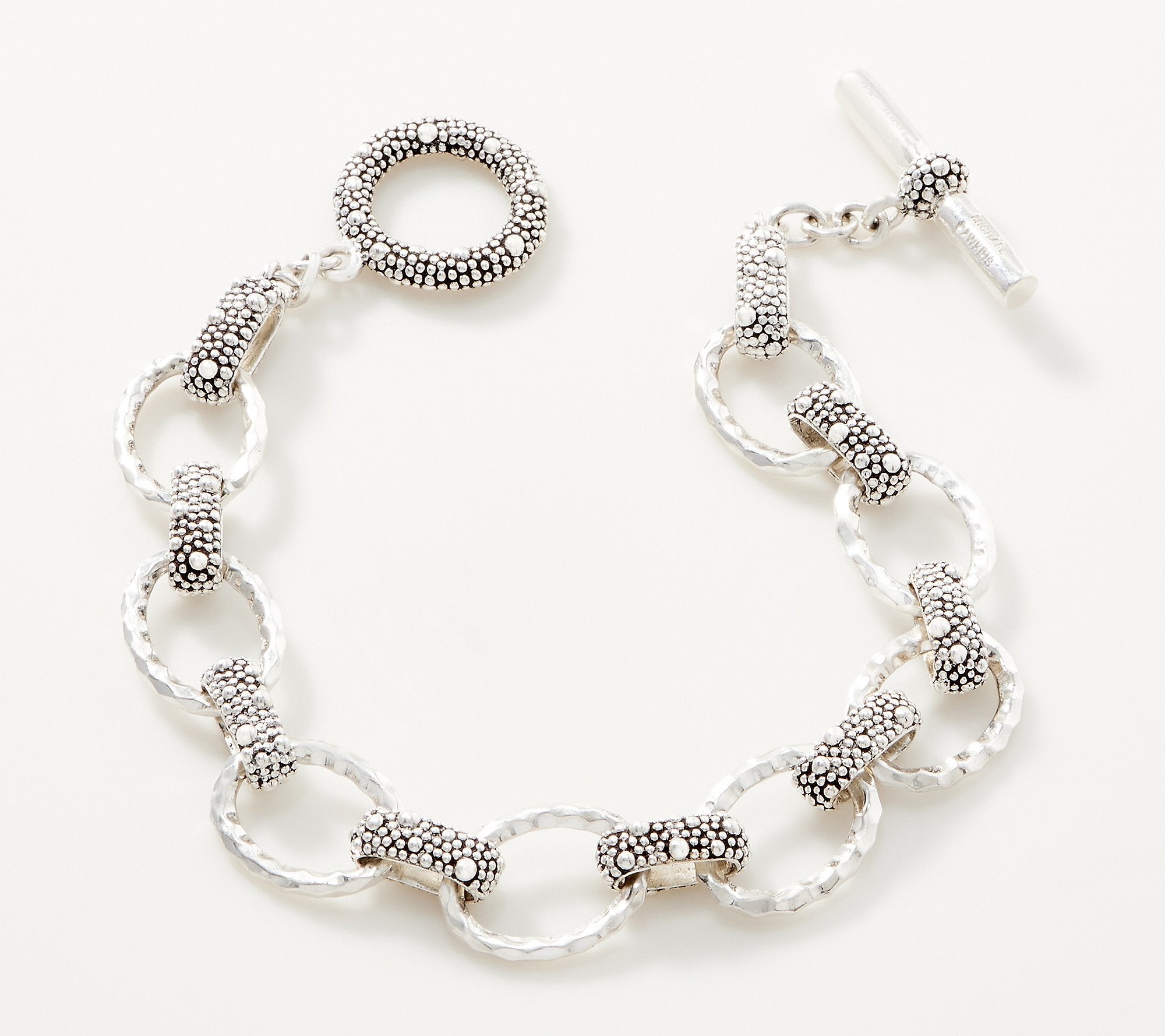 Creating stunning contrast, this sterling silver bracelet boasts both hammered oval links and starry-night textured links in an alternating design. From Michael Dawkins.