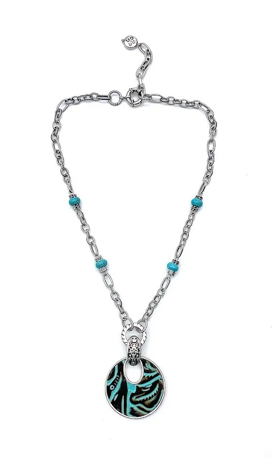 Home Patricia Nash Silvertone Turquoise Leather Inlay Pendant. 18"