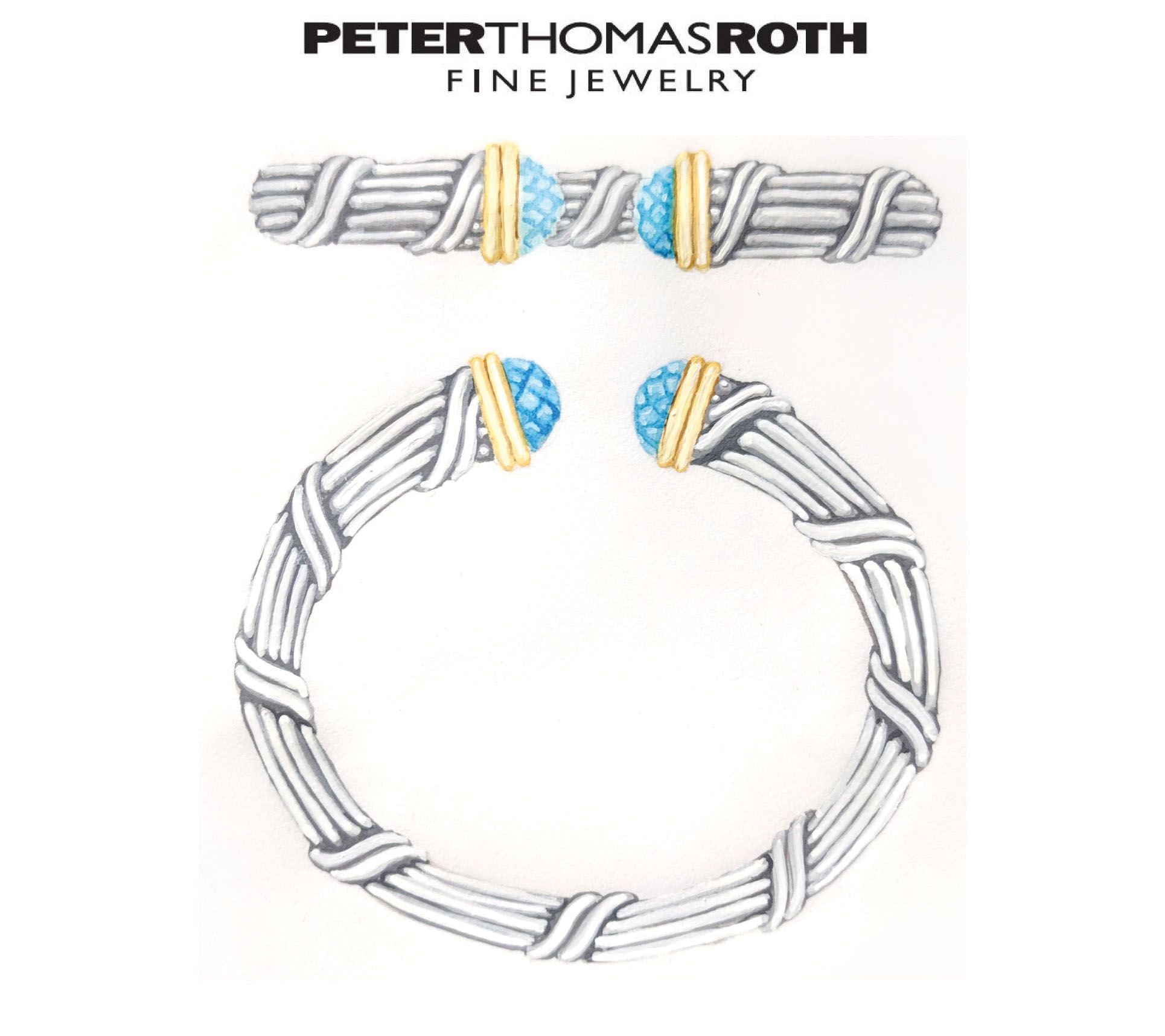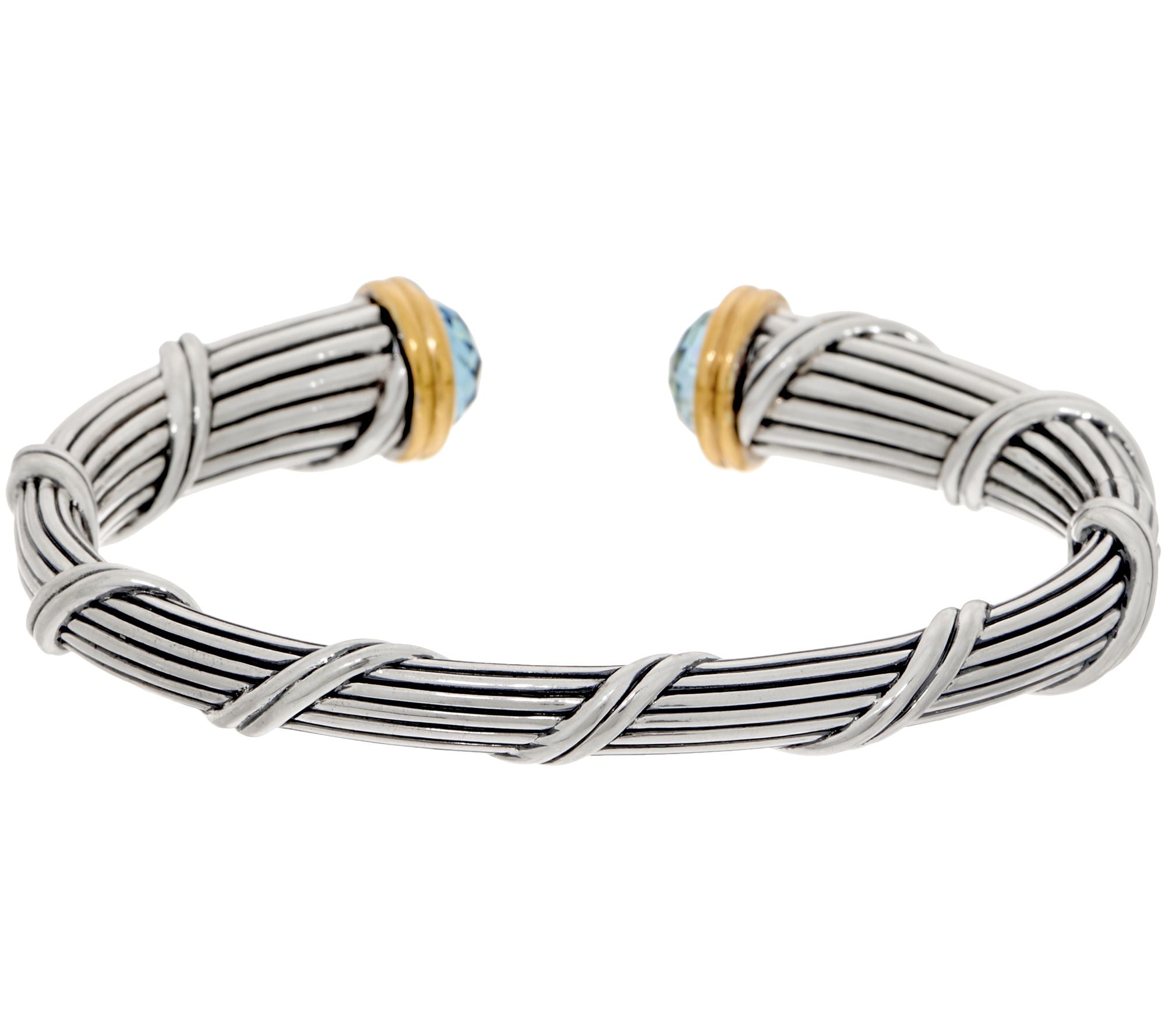 With faceted blue topaz gemstones in an 18K yellow gold-clad sterling silver setting, this sterling silver cuff makes a brilliant addition to any outfit. From Peter Thomas Roth.