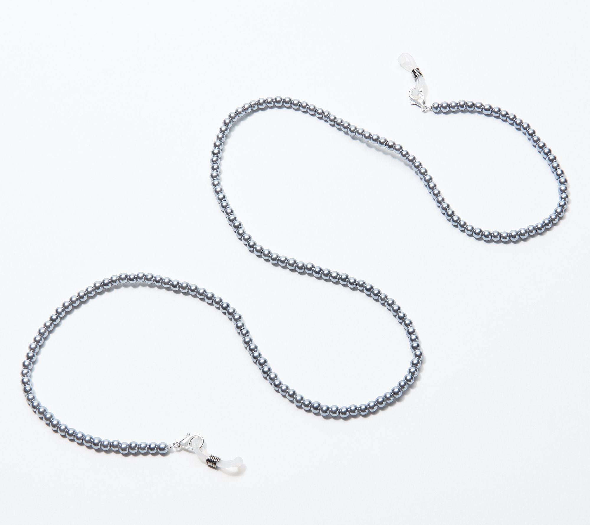 Innovation alert! Keep your face covering (or eyewear) handy at all times with this beautiful faux pearl beaded chain. From Prive Revaux.