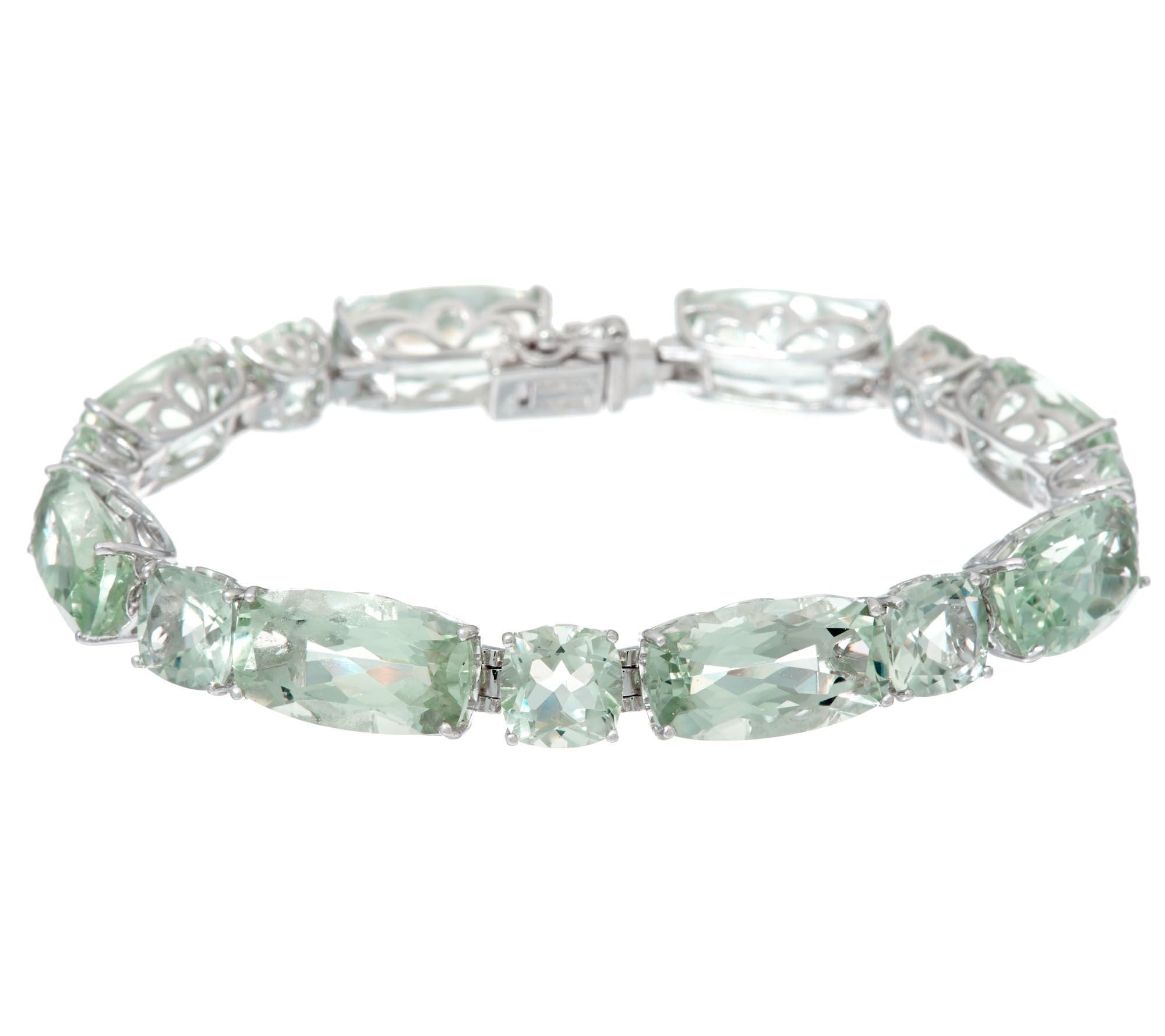 Show off your star power! Done in sterling silver, this tennis bracelet twinkles with an alternating pattern of prong-set, cushion-cut, faceted quartz and prong-set, cushion-cut, elongated quartz. Get ready to shine.