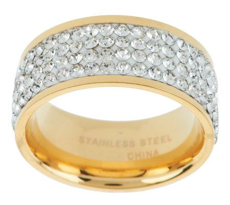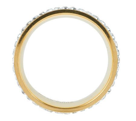 QVC Stainless Steel Silk Fit Yellow Gold Crystal Band Ring, Size 5