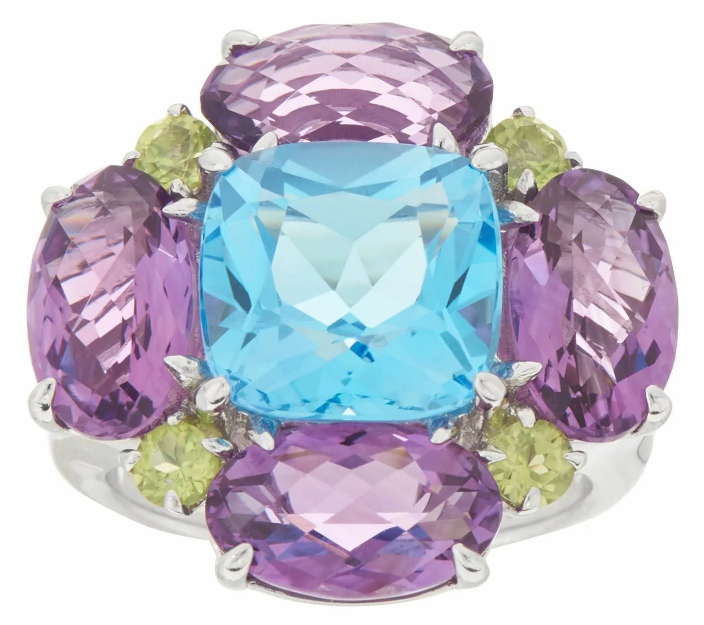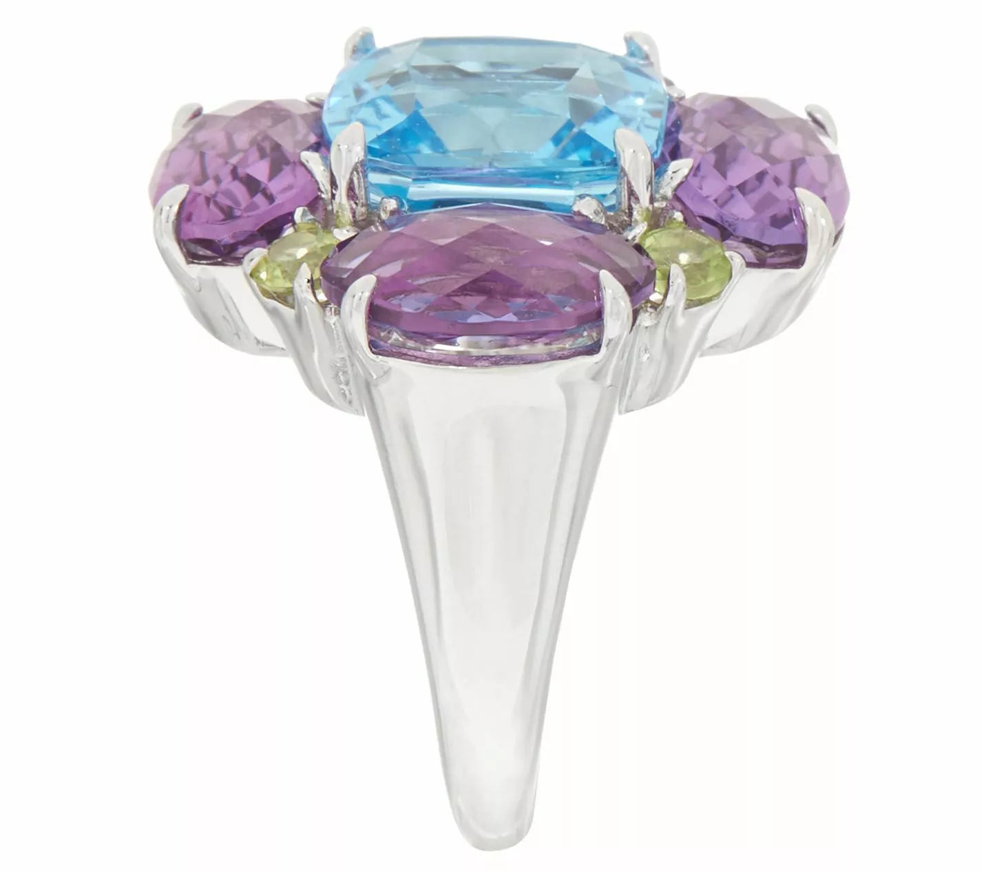 Enhance your collection with the QVC Sterling Silver 10.10Ct Multi-Gemstone Flower Ring. With its stunning gemstone array and classic sterling silver design, this ring offers the perfect balance of color, elegance, and sophistication. Perfect for those who love bold, beautiful jewelry that makes a statement.