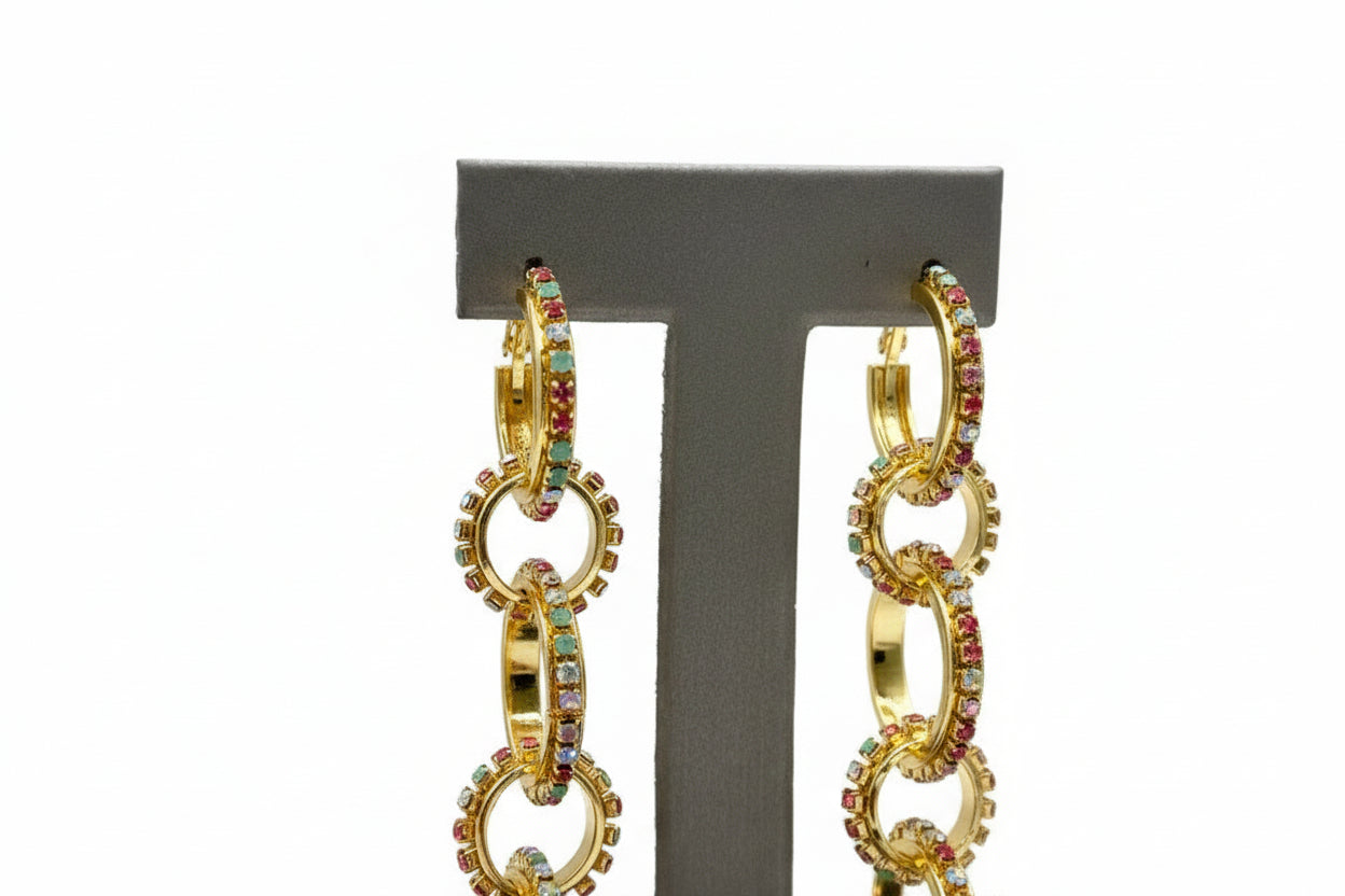 Add a vibrant touch to your look with these eye-catching R.J. Graziano Multicolor Crystal Multi-Link Drop Earrings. Designed with shimmering crystals in a rainbow of hues, each interlocking link creates movement, sparkle, and standout style. The 2" drop provides an elegant, face-framing silhouette while remaining lightweight for comfortable, all-day wear. Perfect for brightening up casual outfits or adding a playful pop of color to evening ensembles.