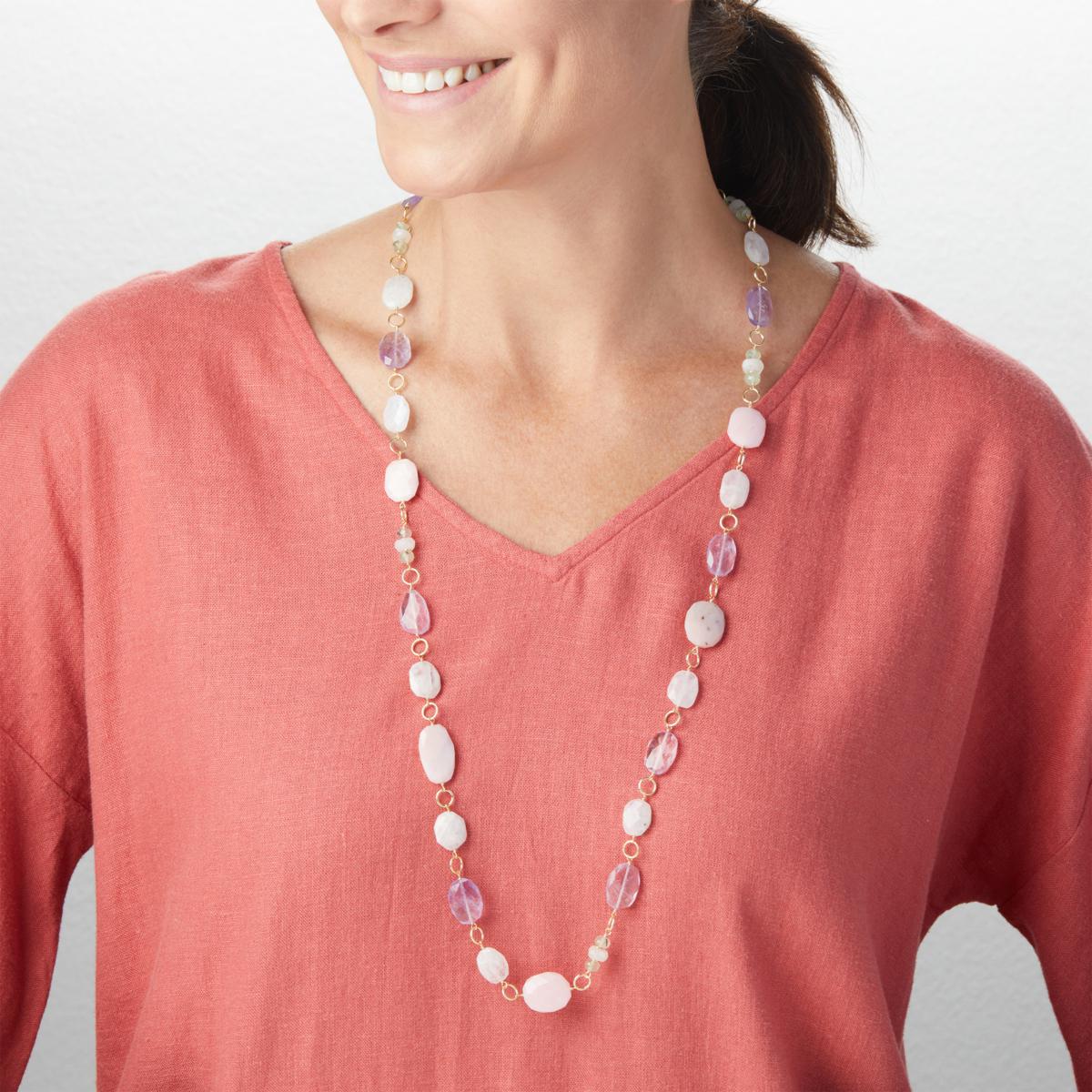 Genuine gemstones in a palette of pretty, pastel colors, make this goldplated link necklace a great choice for layered and pairing with favorite seasonal outfits.