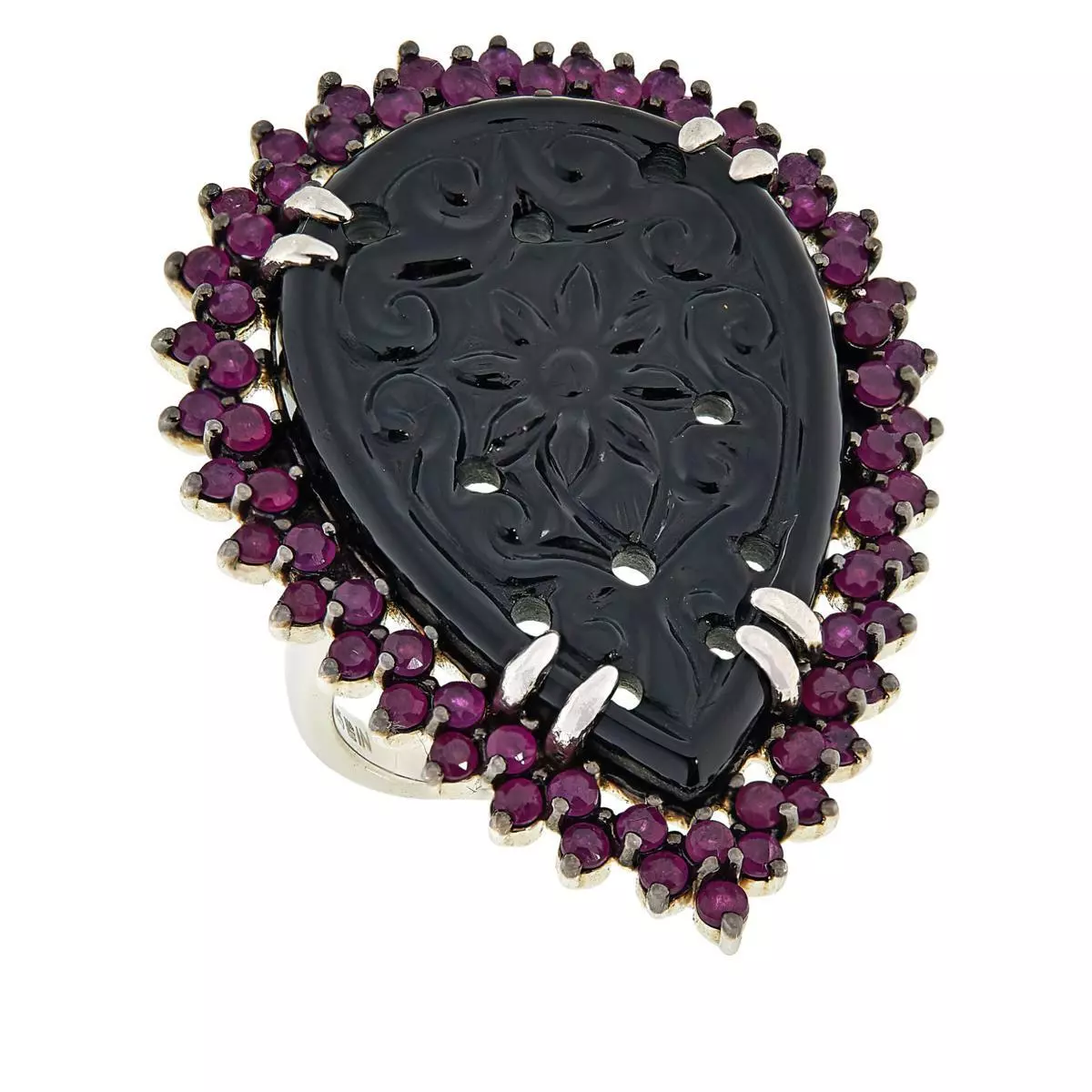 Home Rarities Sterling Silver Pear Shaped Carved Black Onyx Ring Size 5