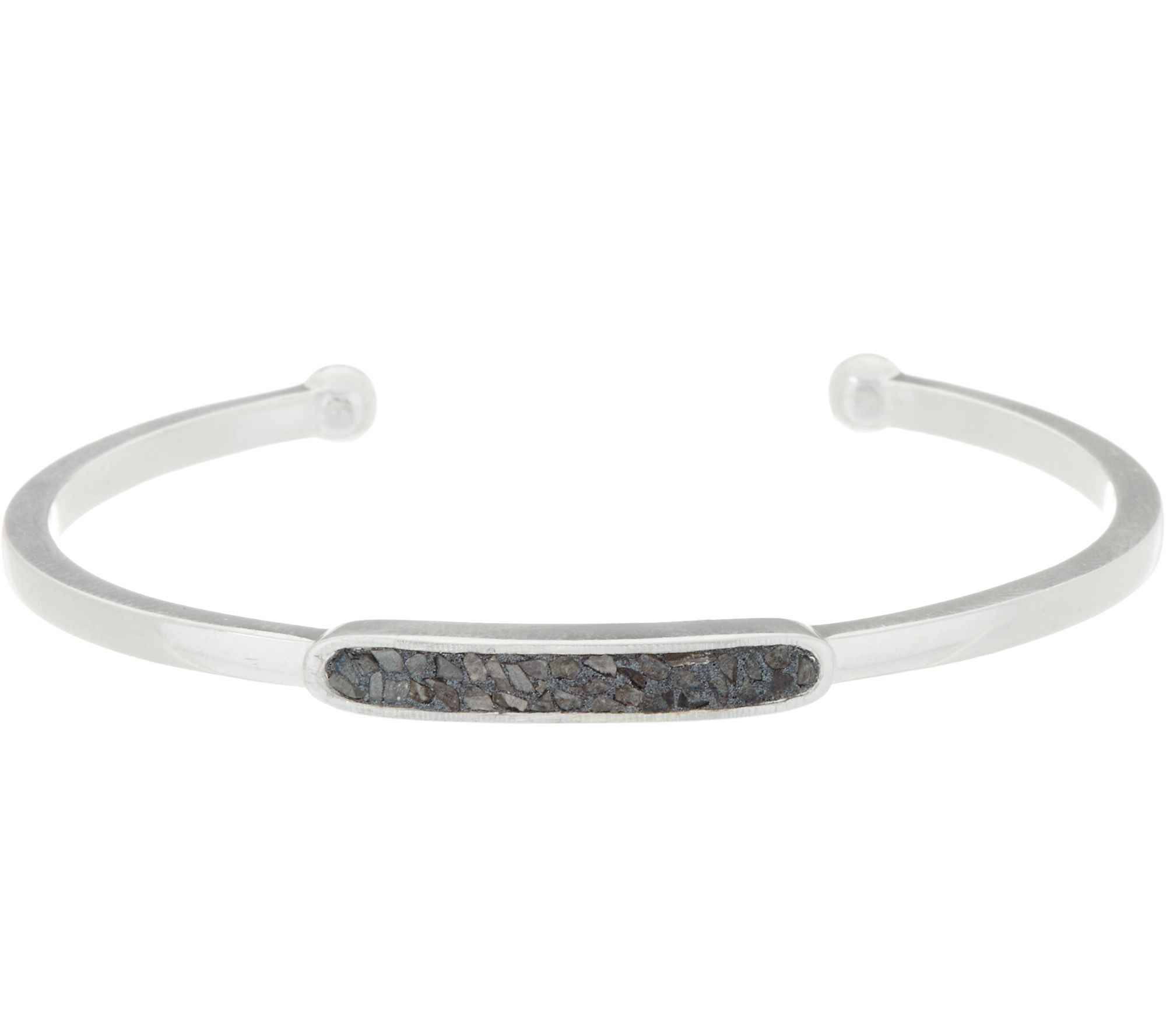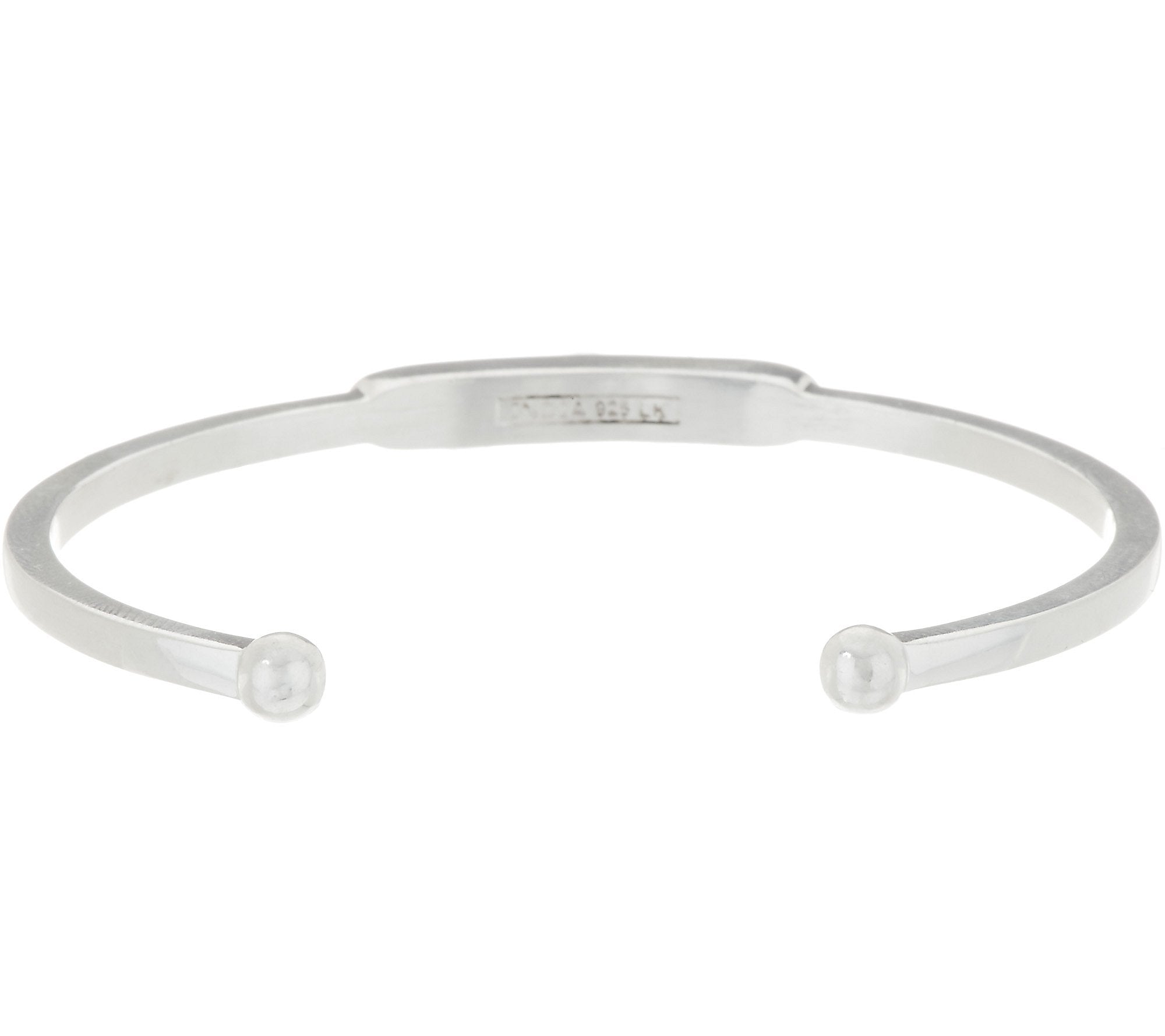This sterling silver cuff displays an elongated station of diamond slices to capture your gaze. From Shana Gulati.
