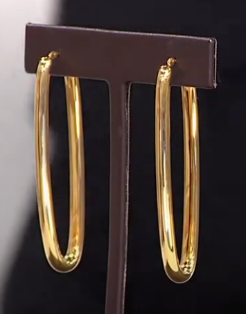 Design: Elongated hoop shape with a polished finish, adding a modern twist to a classic style.