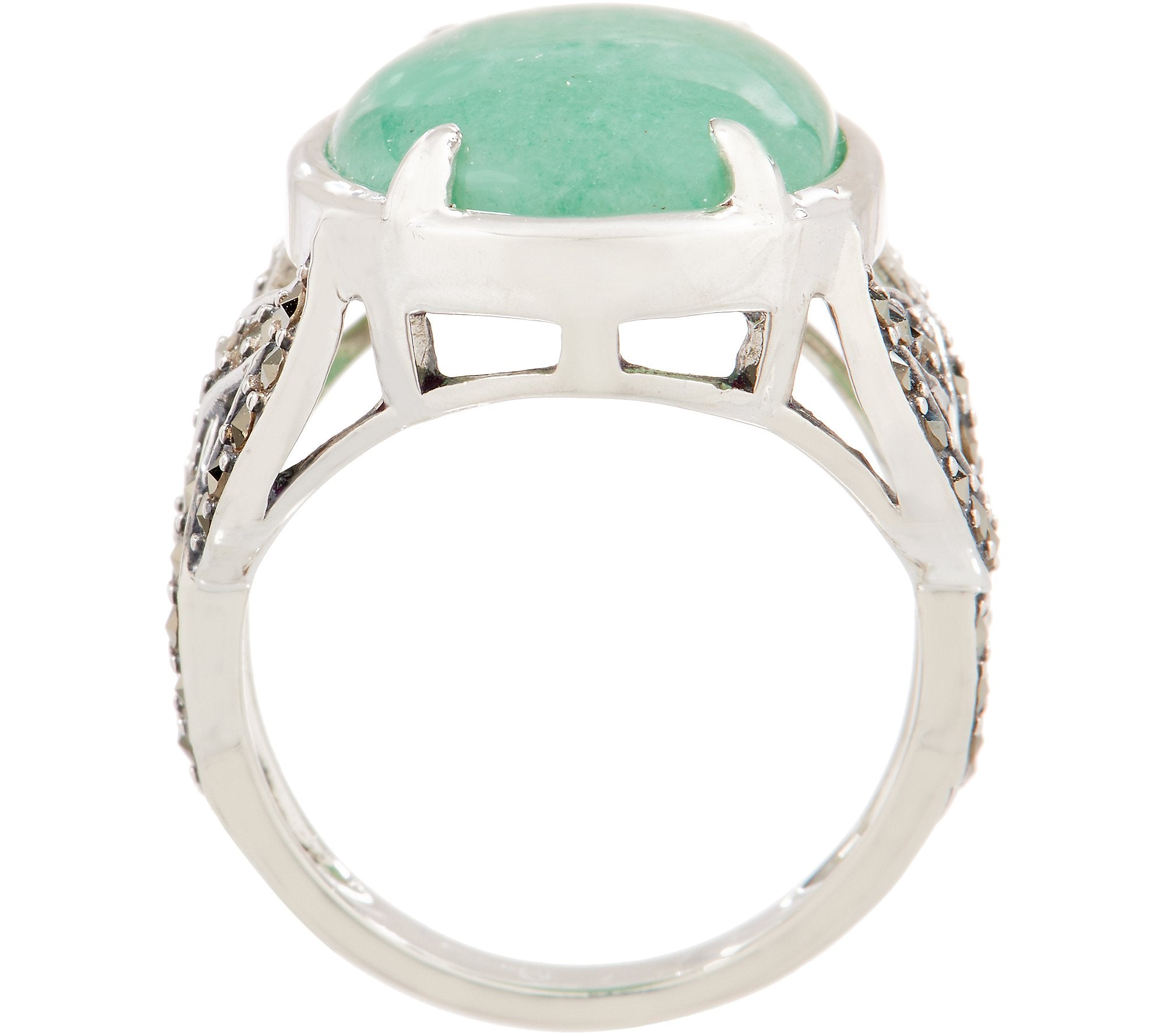 Celebrate timeless craftsmanship with this stunning Solvar sterling silver ring, featuring a polished green aventurine gemstone framed by shimmering marcasite accents. Designed in Ireland, this ring offers a blend of natural beauty and vintage charm — perfect for collectors of Celtic elegance or gemstone lovers alike.