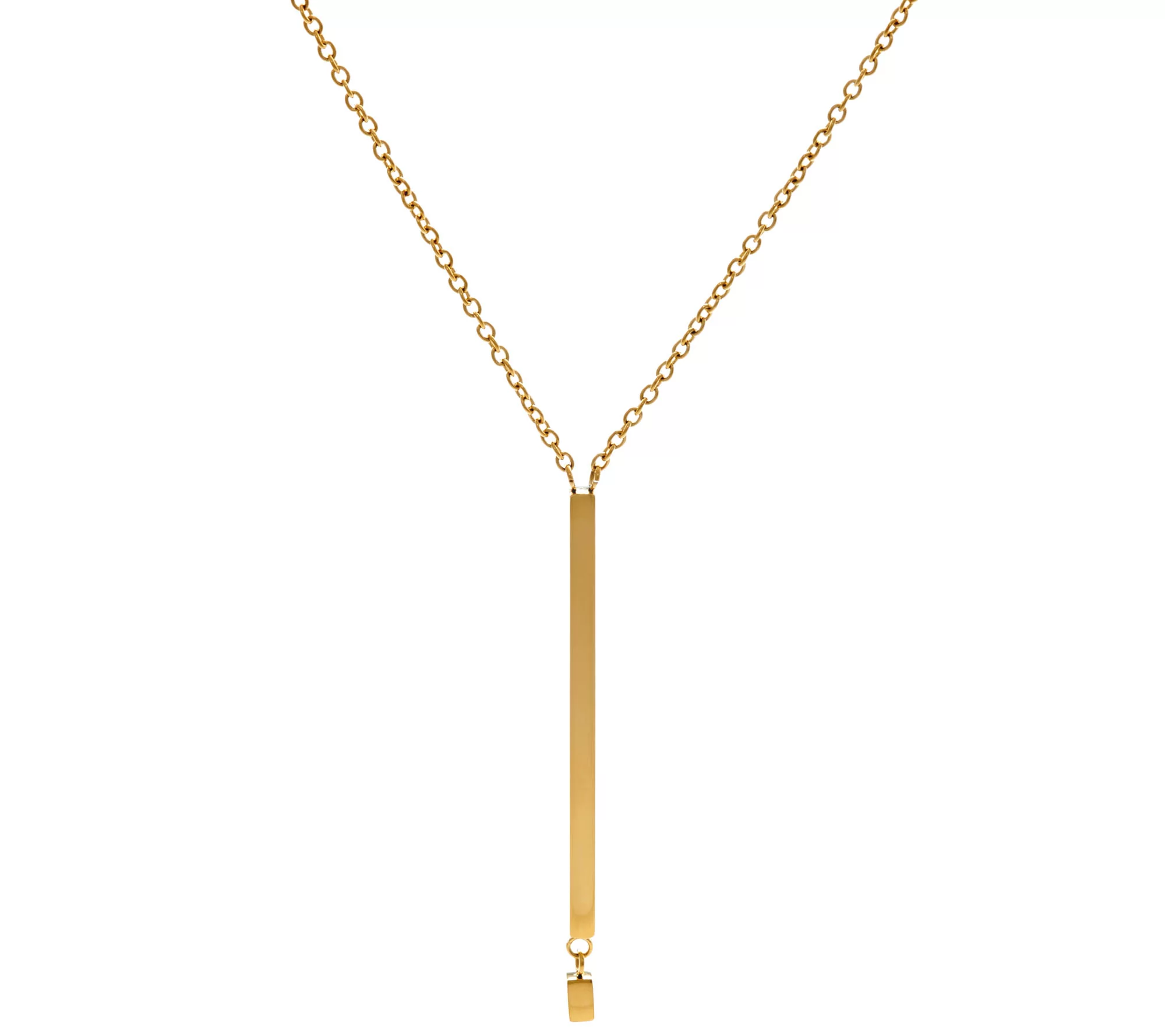 Head straight to style. Crafted with a fine oval link chain, this Steel by Design stainless steel necklace features a stationary vertical bar in the center. For more movement, a smaller vertical bar dangles below. From Steel by Design(R) Jewelry.