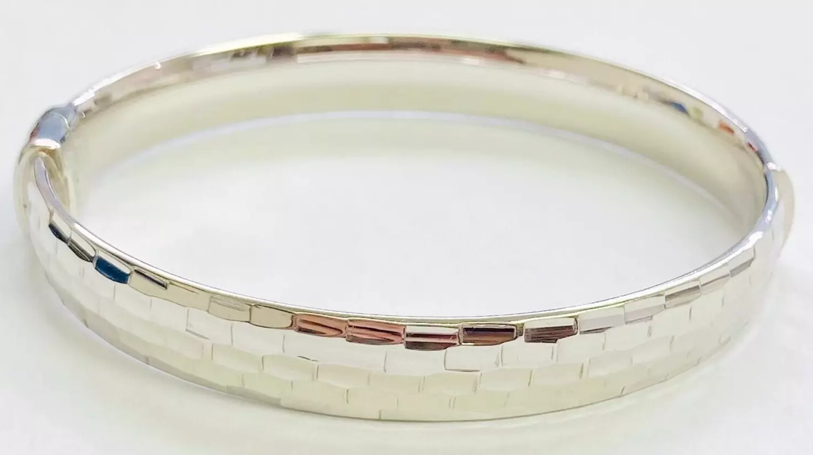 The sleek simplicity of a solid sterling silver bangle welcomes bold style and shine into your wardrobe. Whether stacked with others or on its own, this classic design is both on-trend and timeless. And it gives you options! Pick the polished bangle for a lustrous look or choose one of the diamond-cut textures to add dimension. Which one will you choose? From Silver Style®.