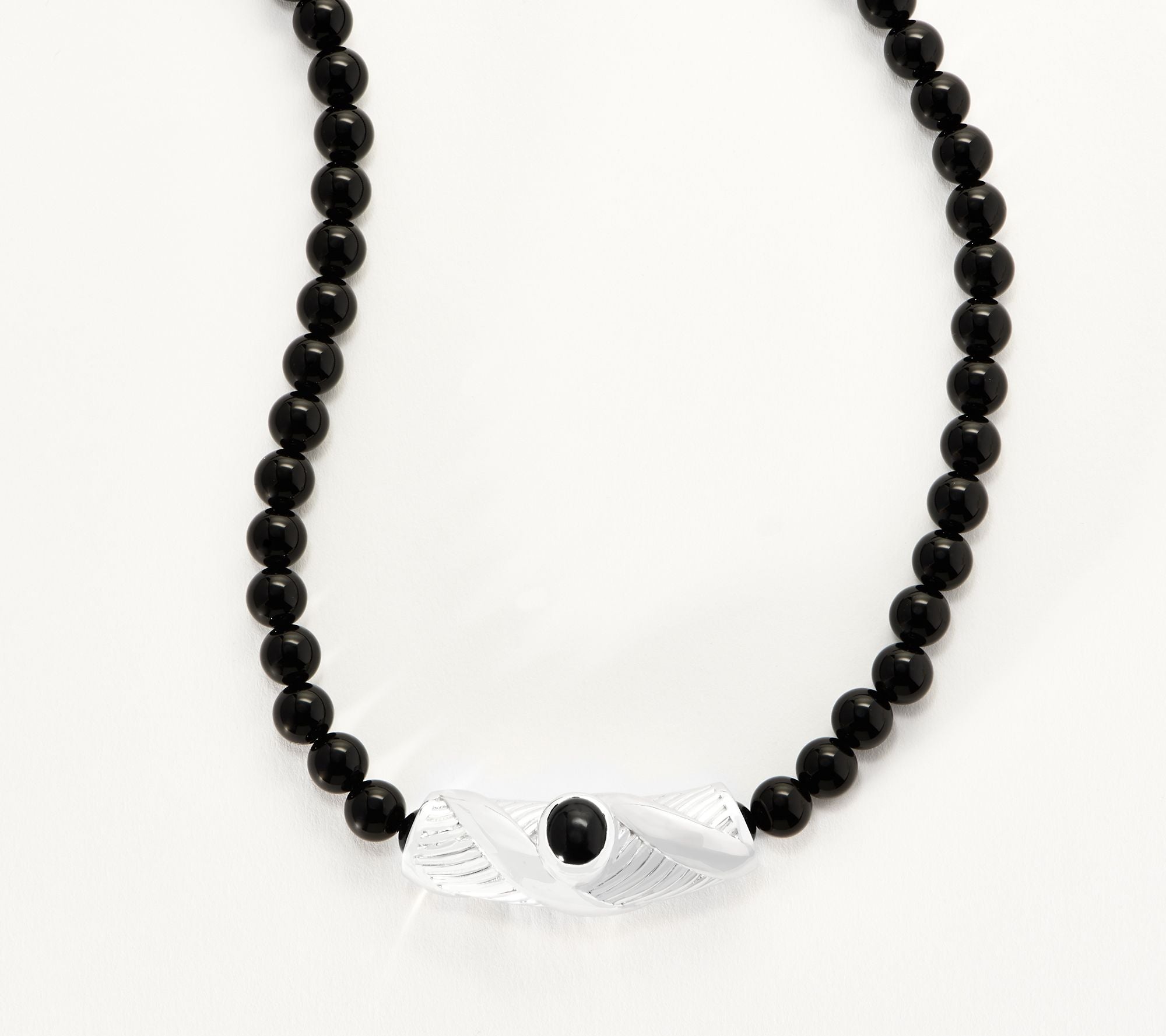 Beautifully colored gemstone beads come together at a hinged, sterling silver frontal motif at the center of this fabulous necklace. A gemstone accent serves as the ideal centerpiece.