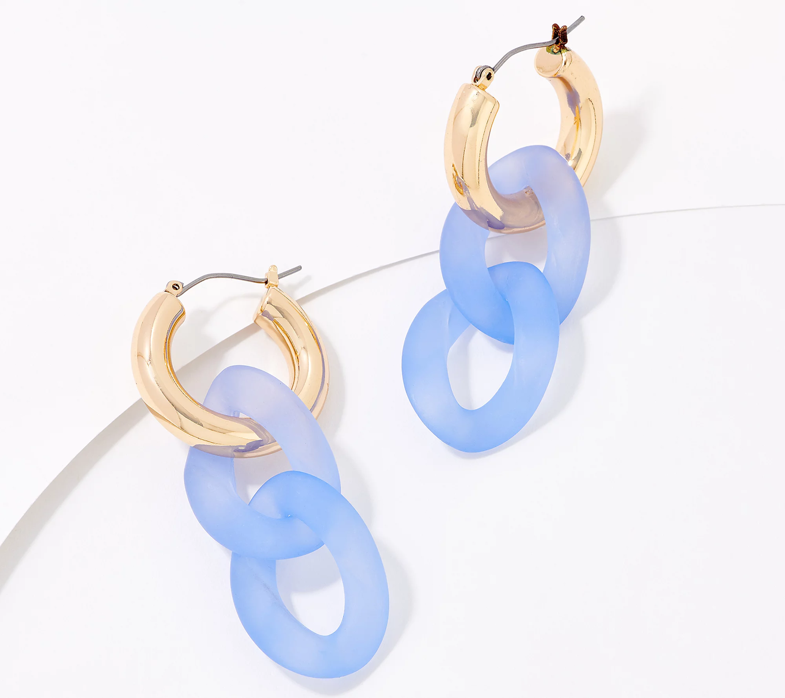 Cue the dramatic music! These double resin link hoop earrings seize the spotlight no matter what you're wearing -- from a denim-and-tee casual outfit to your evening-out LBD. From True Lovelies.