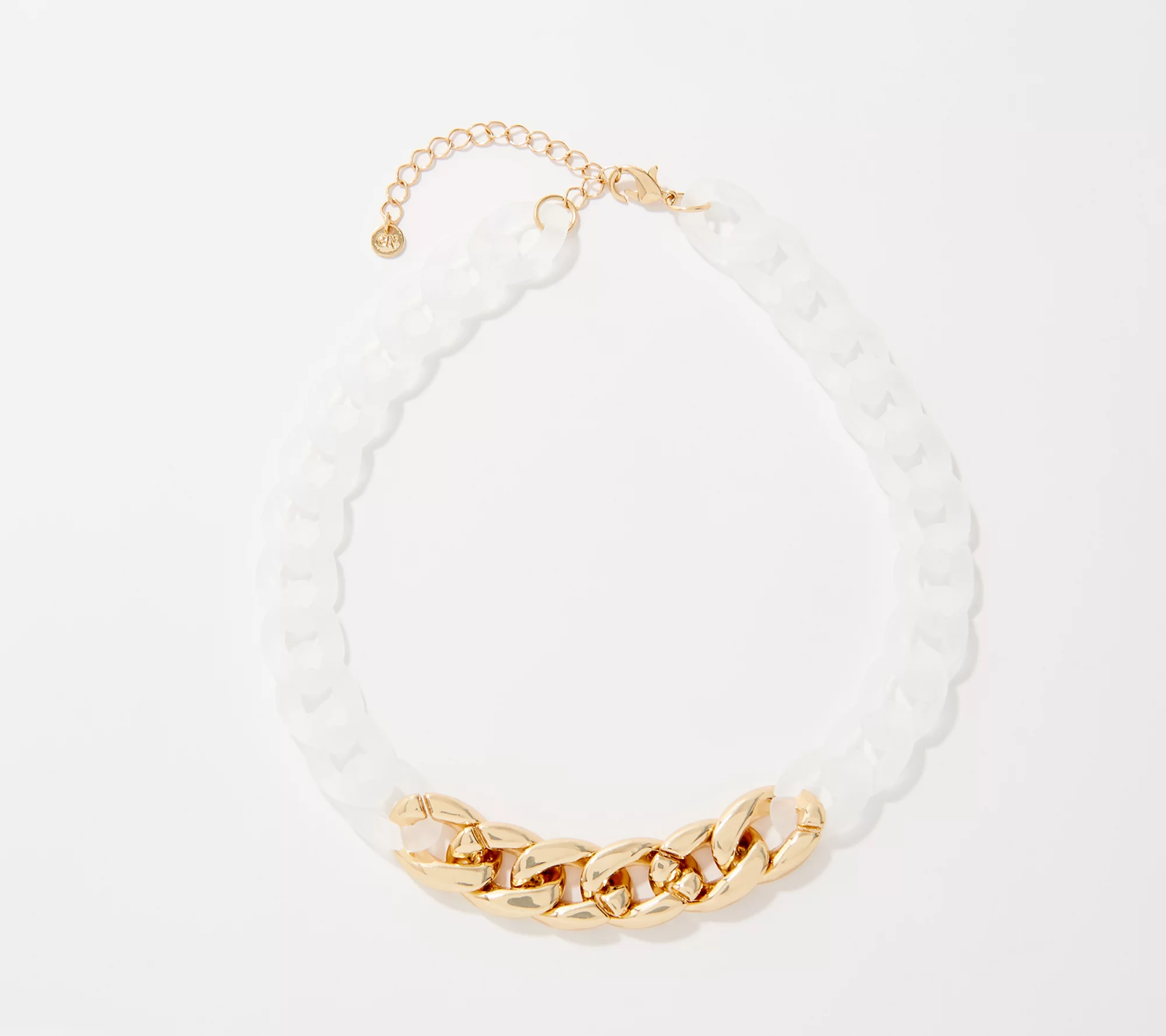 So on-trend and boasting a pop of pizazz, this resin and goldtone collar necklace gets your look linked up with the luxurious style you seek. From True LoveliesTM.