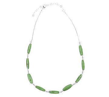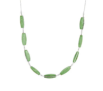 Gorgeously green. Elongated, rectangular-shaped green turquoise stations are accented by a liquid silver strand on one side to create this magnificent necklace. Each station is separated by three polished beads, adding a touch more shine.