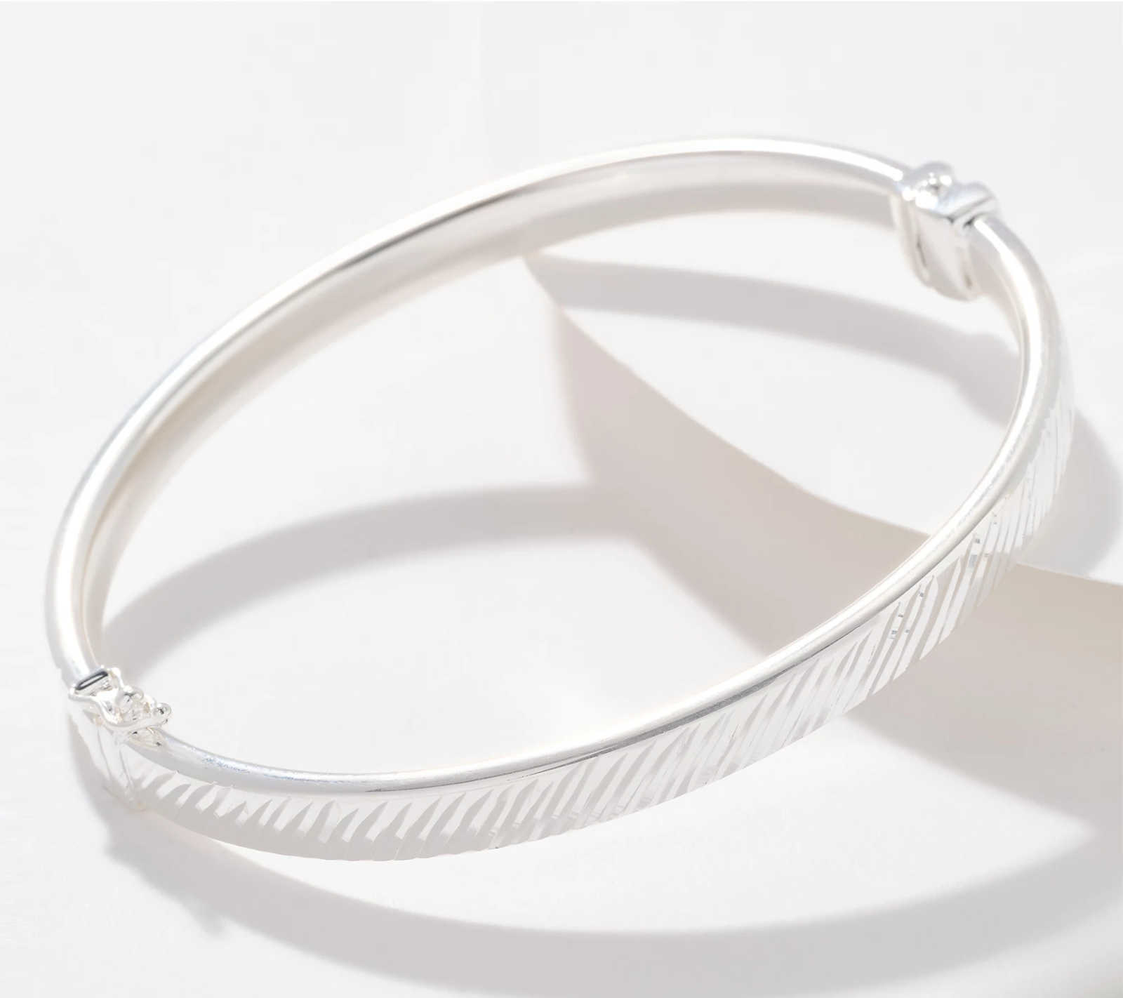 A diagonal diamond-cut design adds eye-catching elegance to this classic rectangular bangle. From Ultrafine® 950 Silver Nickel-Free Jewelry.