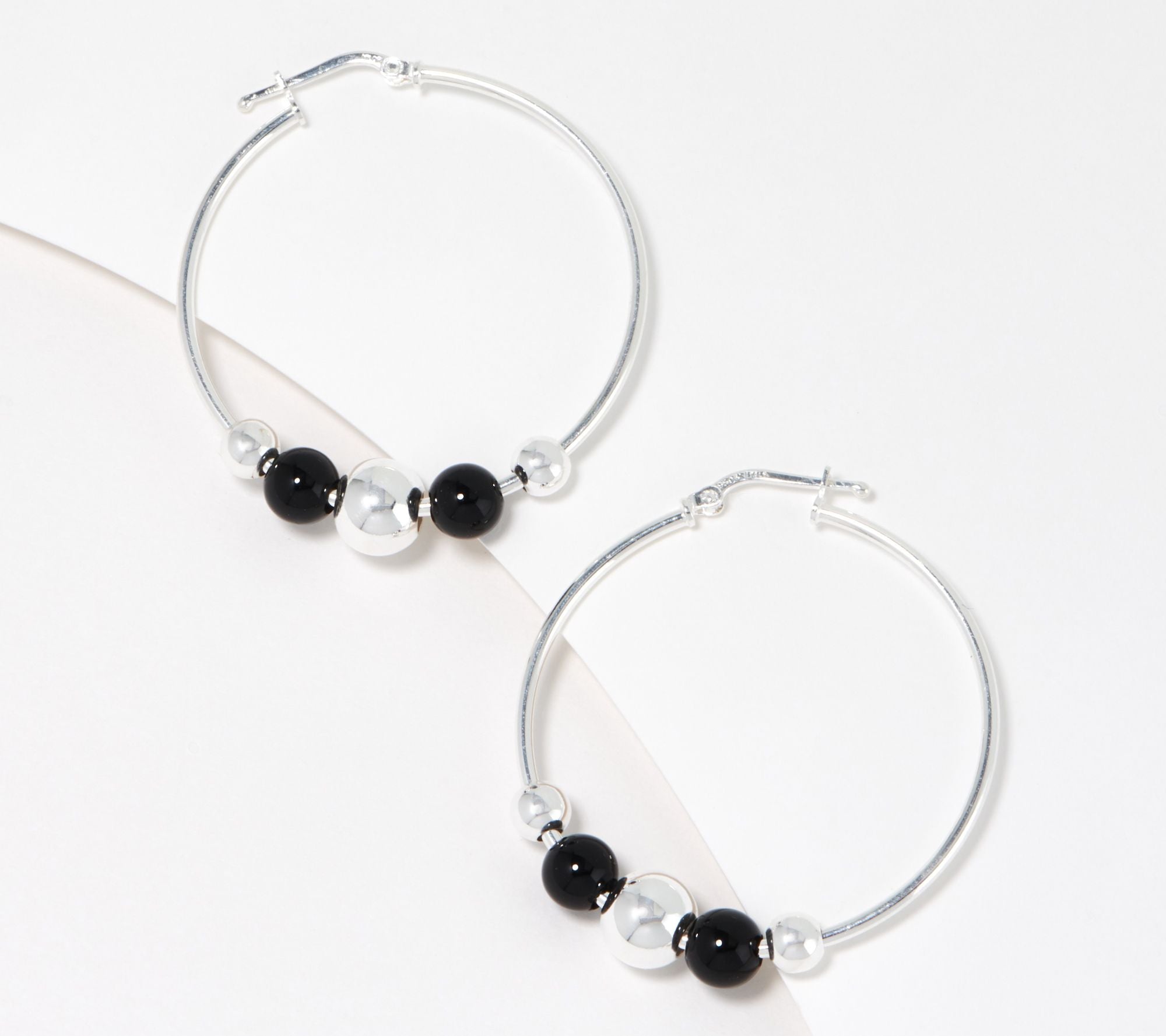 Can't-go-wrong round hoops plus playful polished and gemstone beads equals these ideal-for-any-occasion earrings. From UltraFine® 950 Silver Nickel-Free Jewelry.
