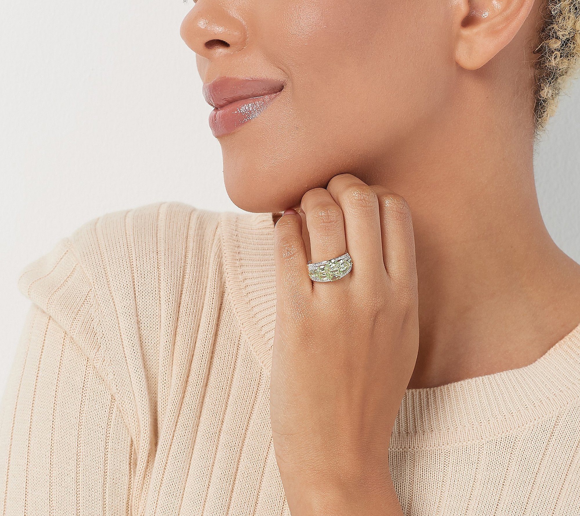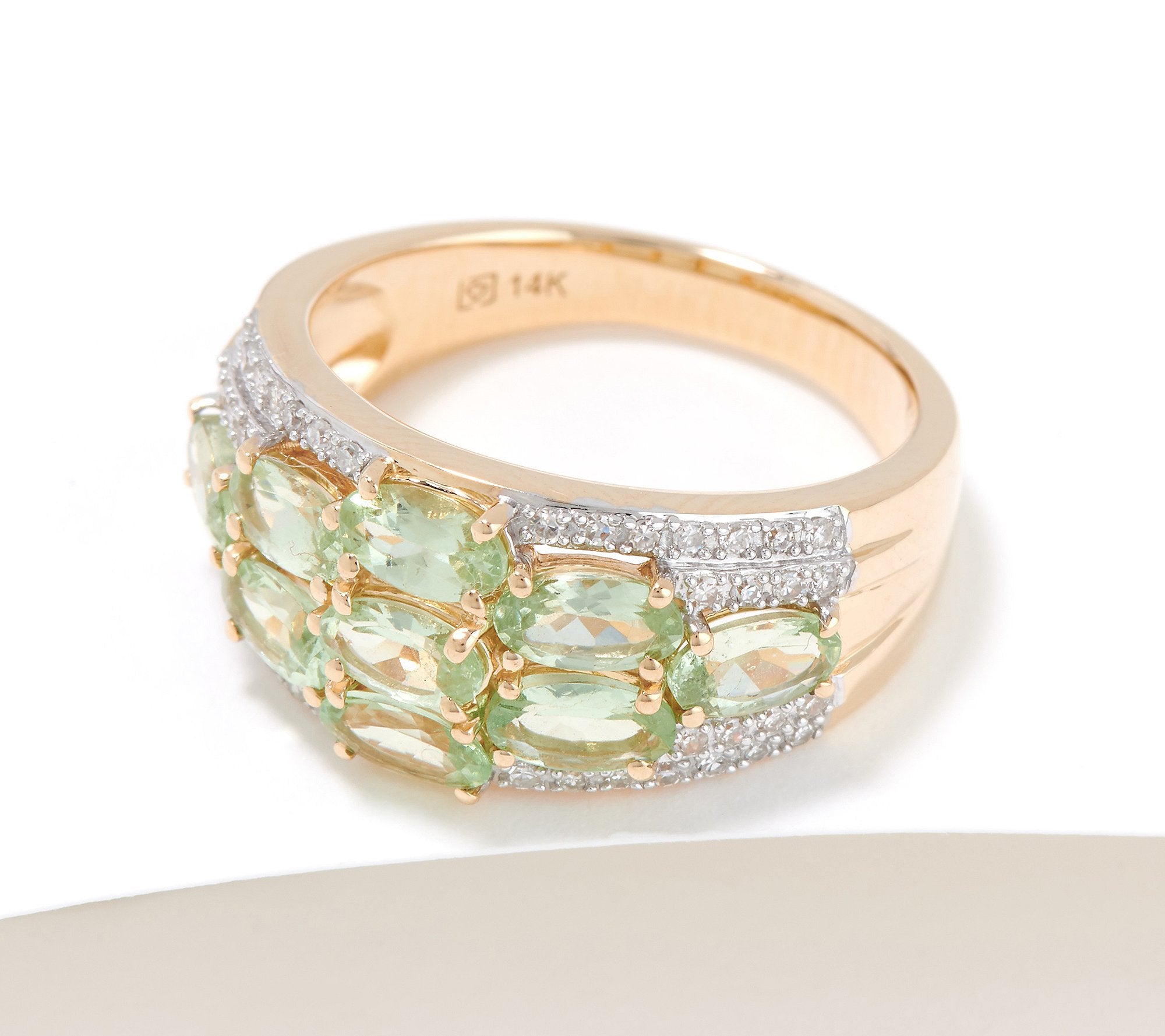 Mint garnet? You may not have heard of this gorgeously green gemstone yet, but this radiant ring displays the mesmerizing hue in an exquisite and unexpected way (with diamond accents for an extra dose of dazzle).